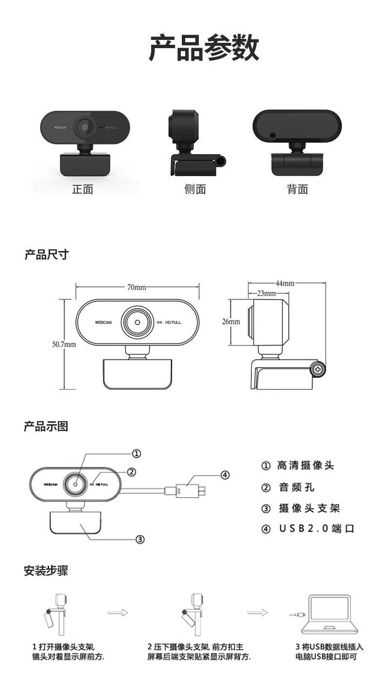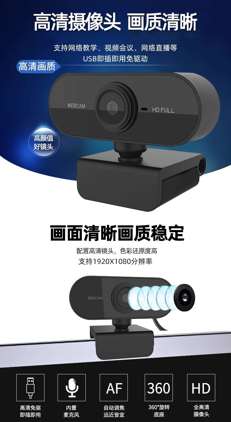 ![]() | A1014-1080p hd [three levels of beauty fill light with privacy cover] digital fixed focus [built-in microphone] driver-free usb camera | ¥29.5 / ≈ 355 ₽ | 9999 | 6144079534956 | |
