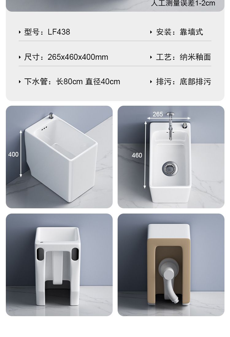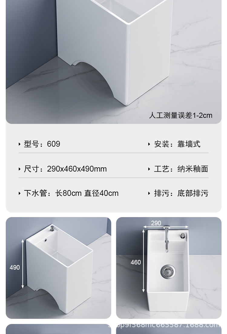 Узкая и длинная интегрированная раковина для швабр для домашнего использования, подходит для балкона, раковины для швабр в ванной