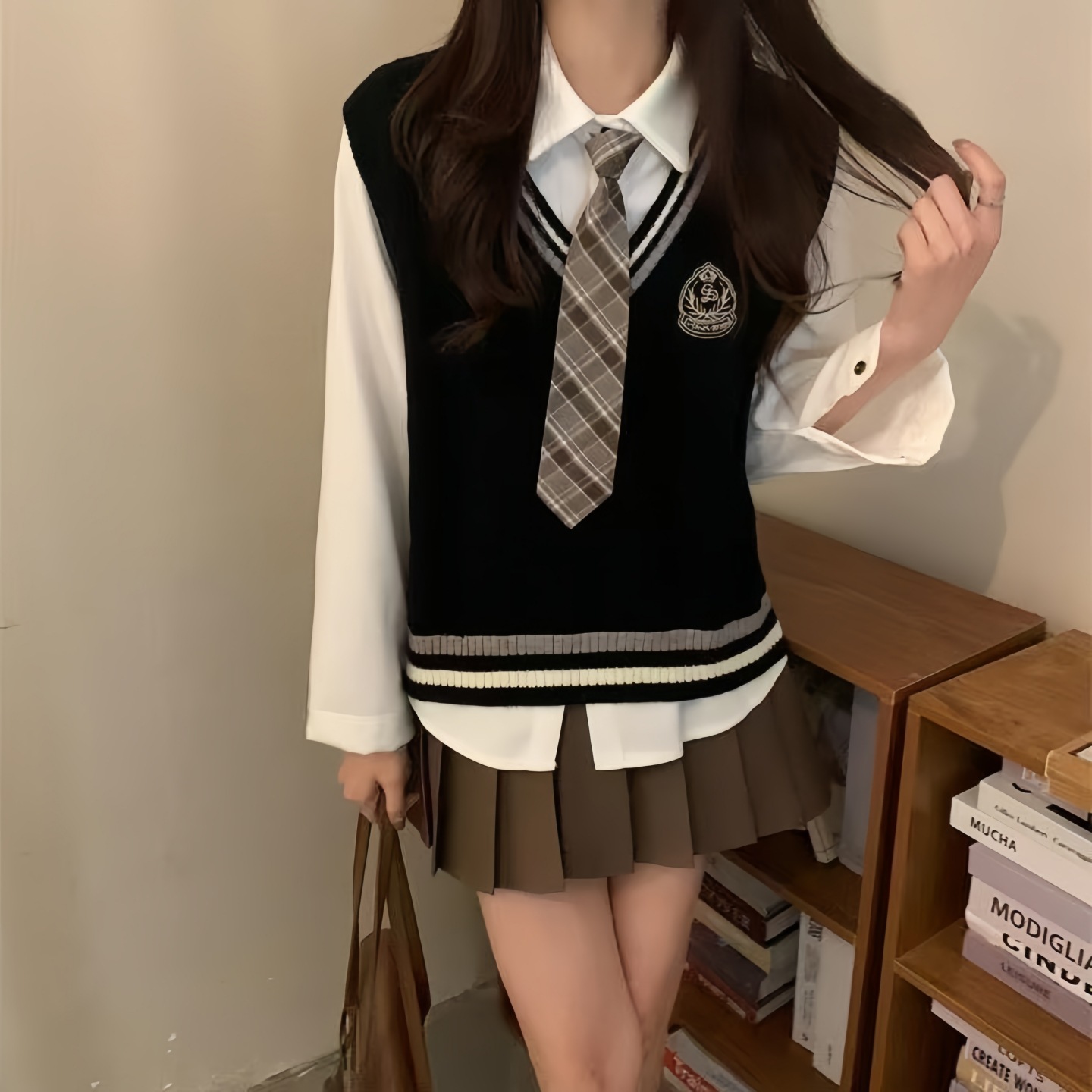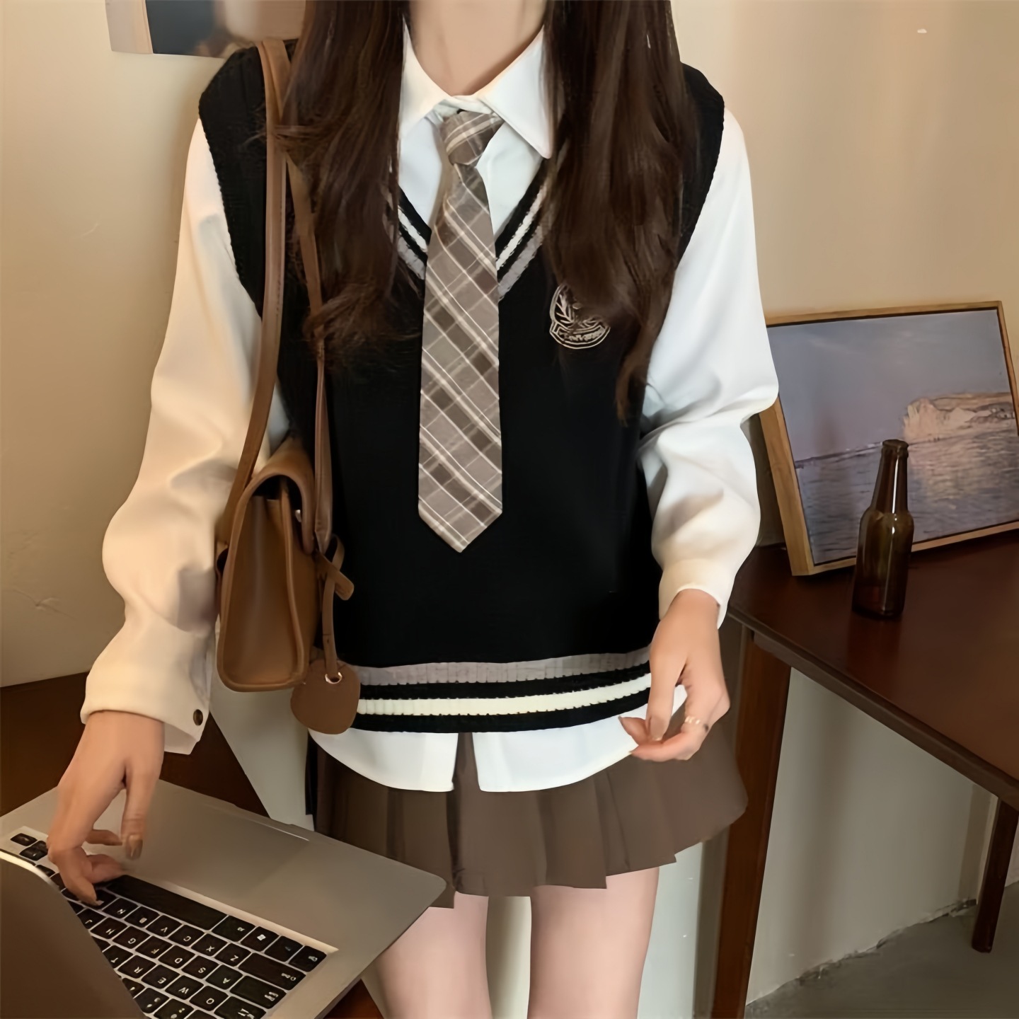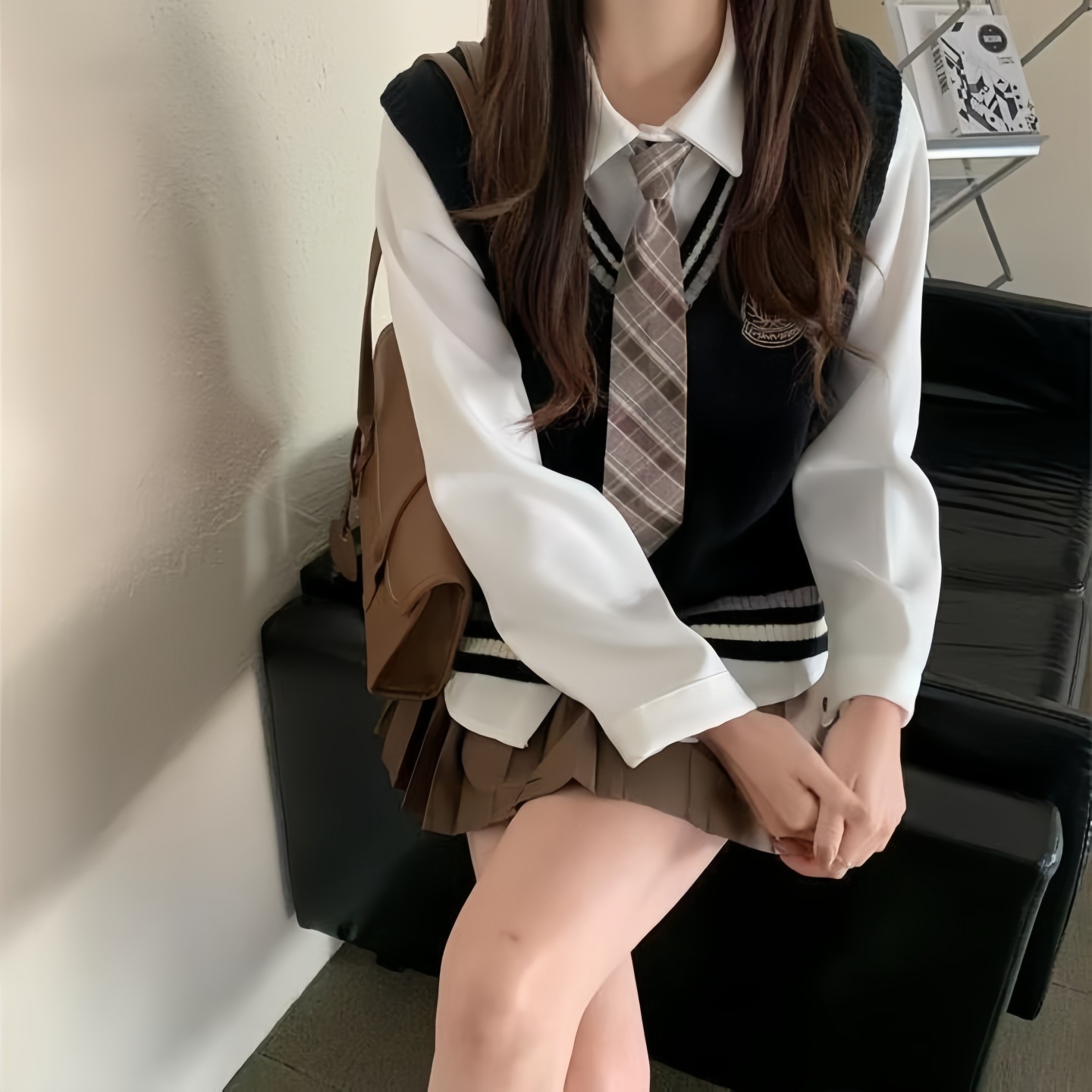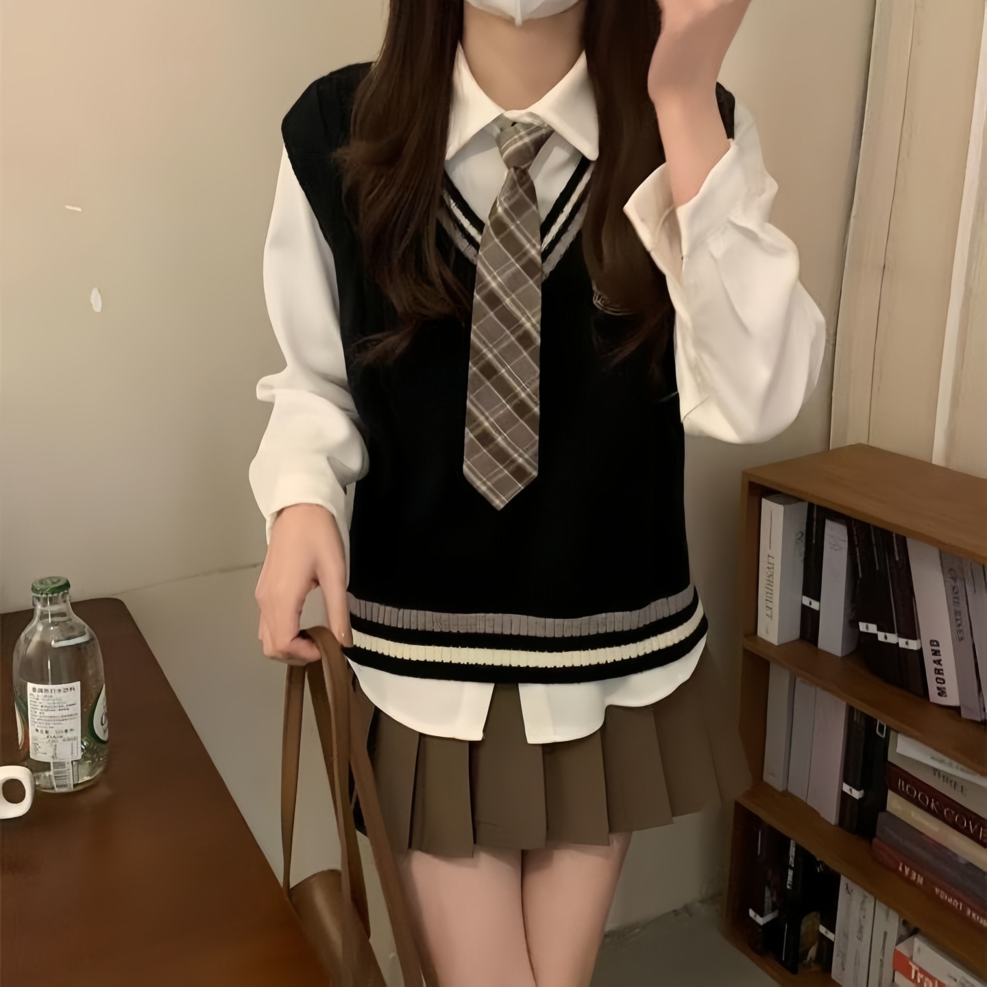 Свитер с фото удостоверения студента, вязаный жилет, многослойная рубашка, униформа JK, юбка с складками, одежда в стиле прэппи