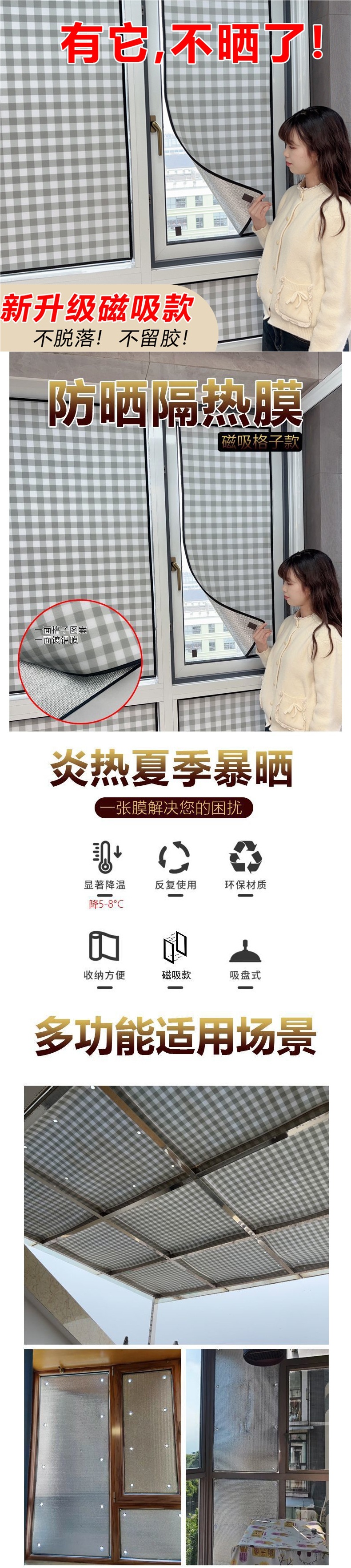 Пленка для защиты от солнца на окна, магнитный экран для балкона, алюминиевая фольга