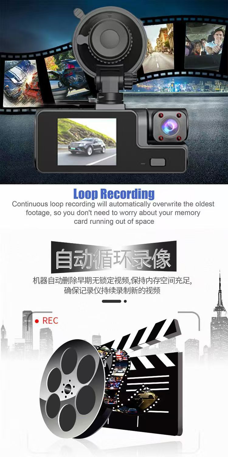 Видеорегистратор A22 с 3 камерами HD 1080P, три линзы, с изображением заднего вида и Wi-Fi