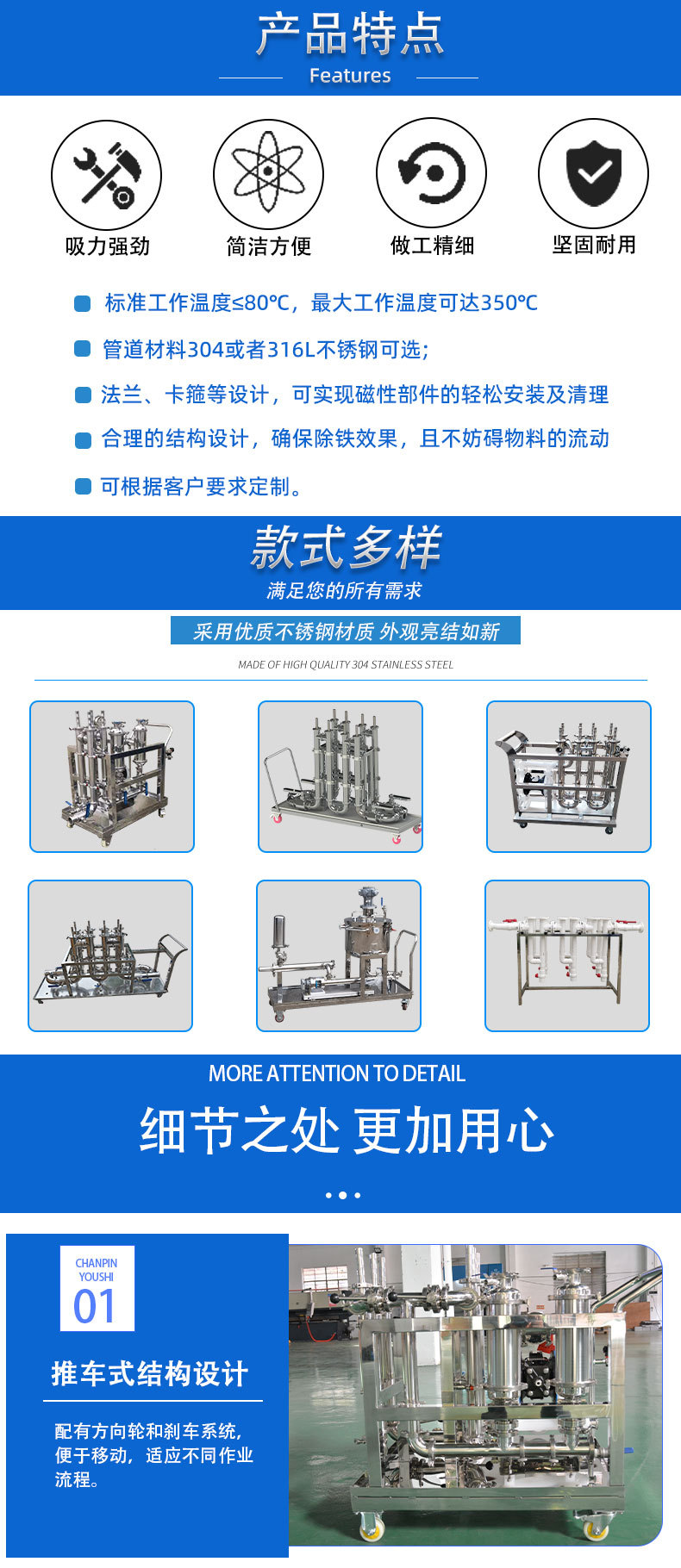 管道浆料除铁器,U型管道除铁器,除铁器,除铁小车,浆料除铁车,磁力小车,新能源除铁器