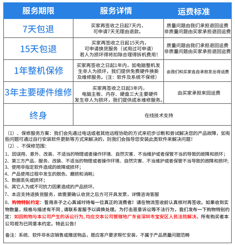 Тип послепродажного обслуживания Store three guarantees