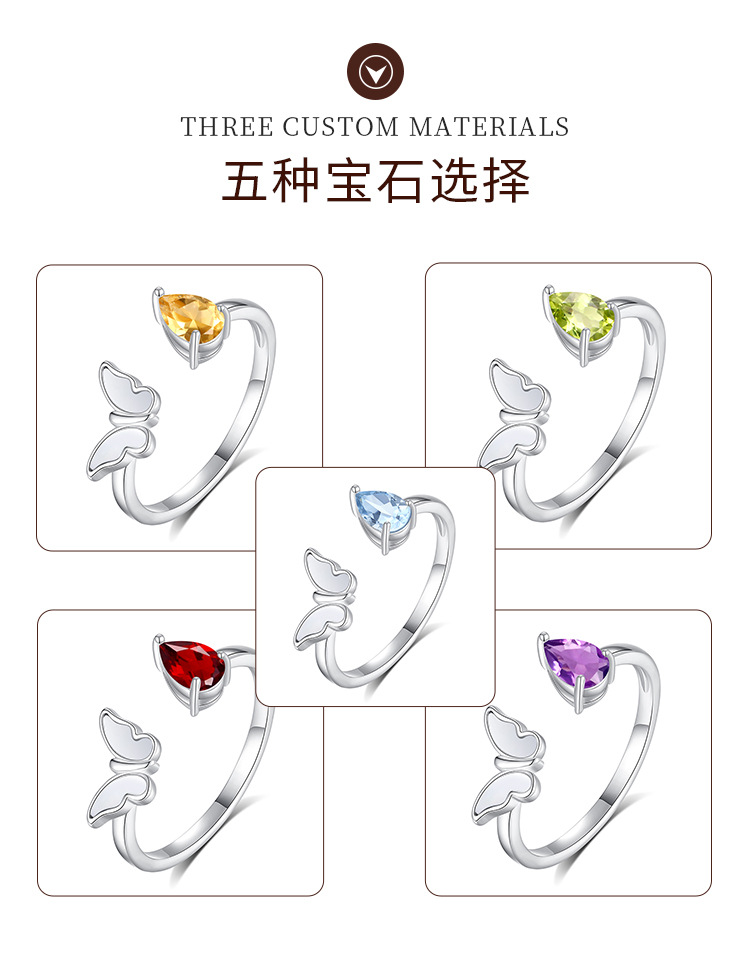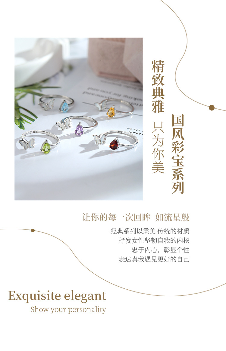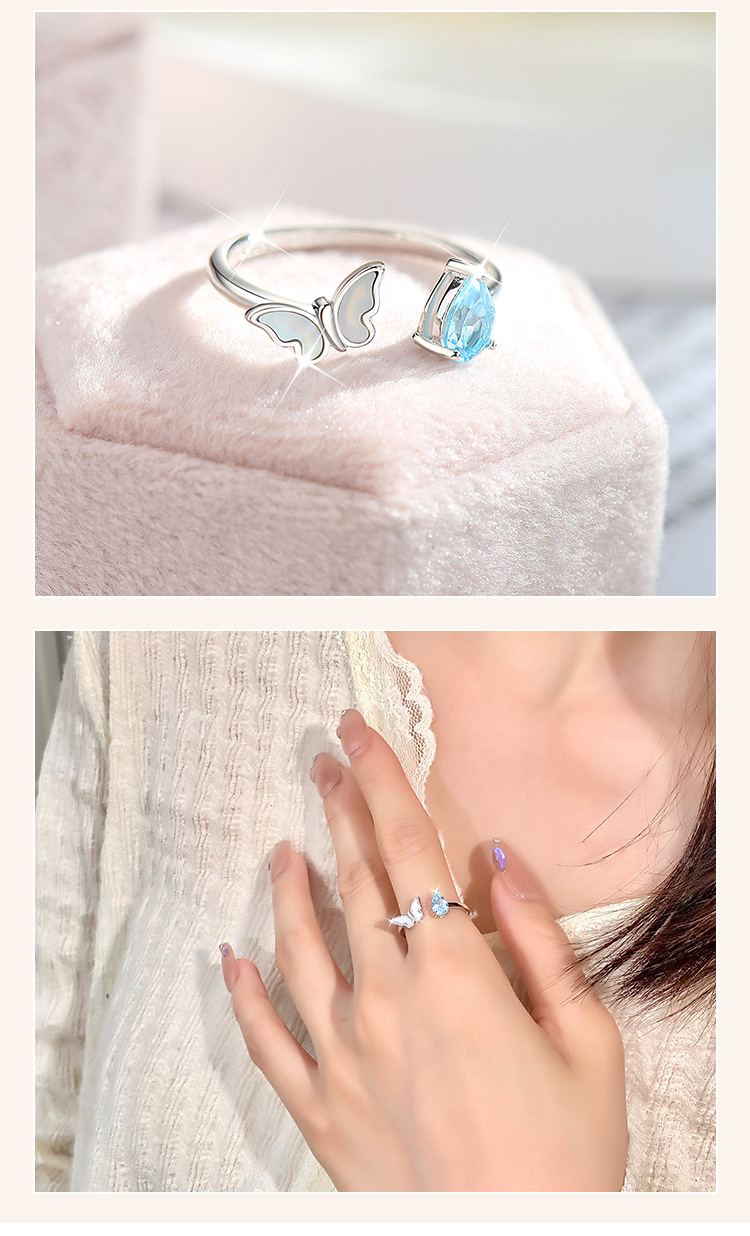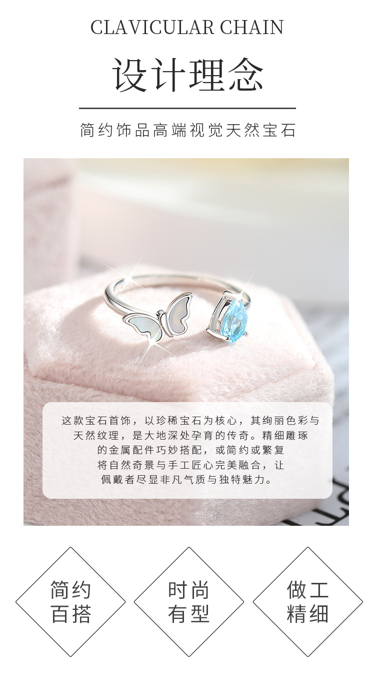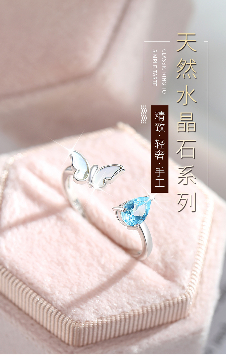 Новое кольцо в китайском стиле с бабочкой из перламутра, нишевое кольцо из натурального кристаллического камня, регулируемое кольцо из серебра S925