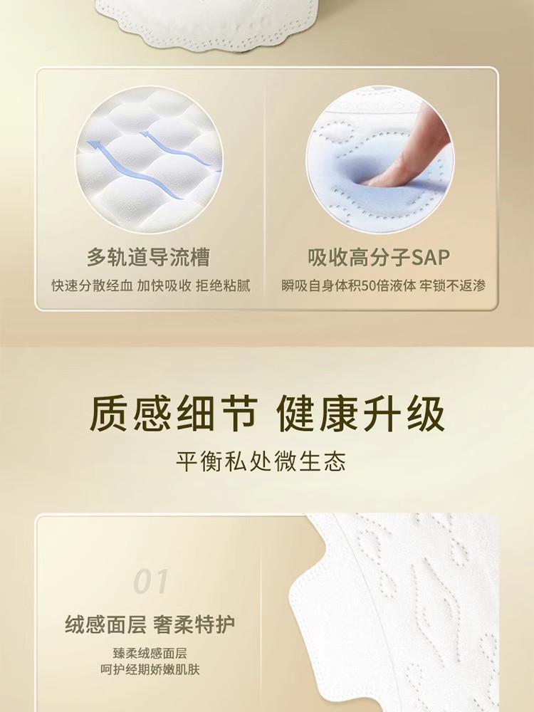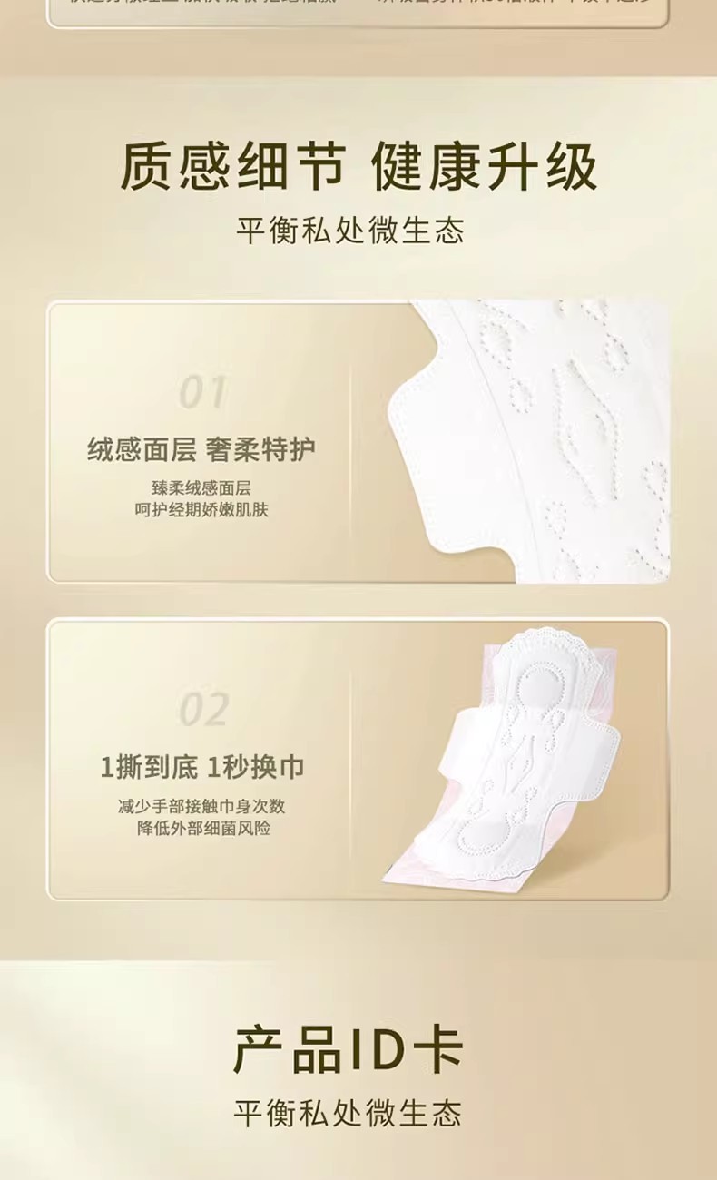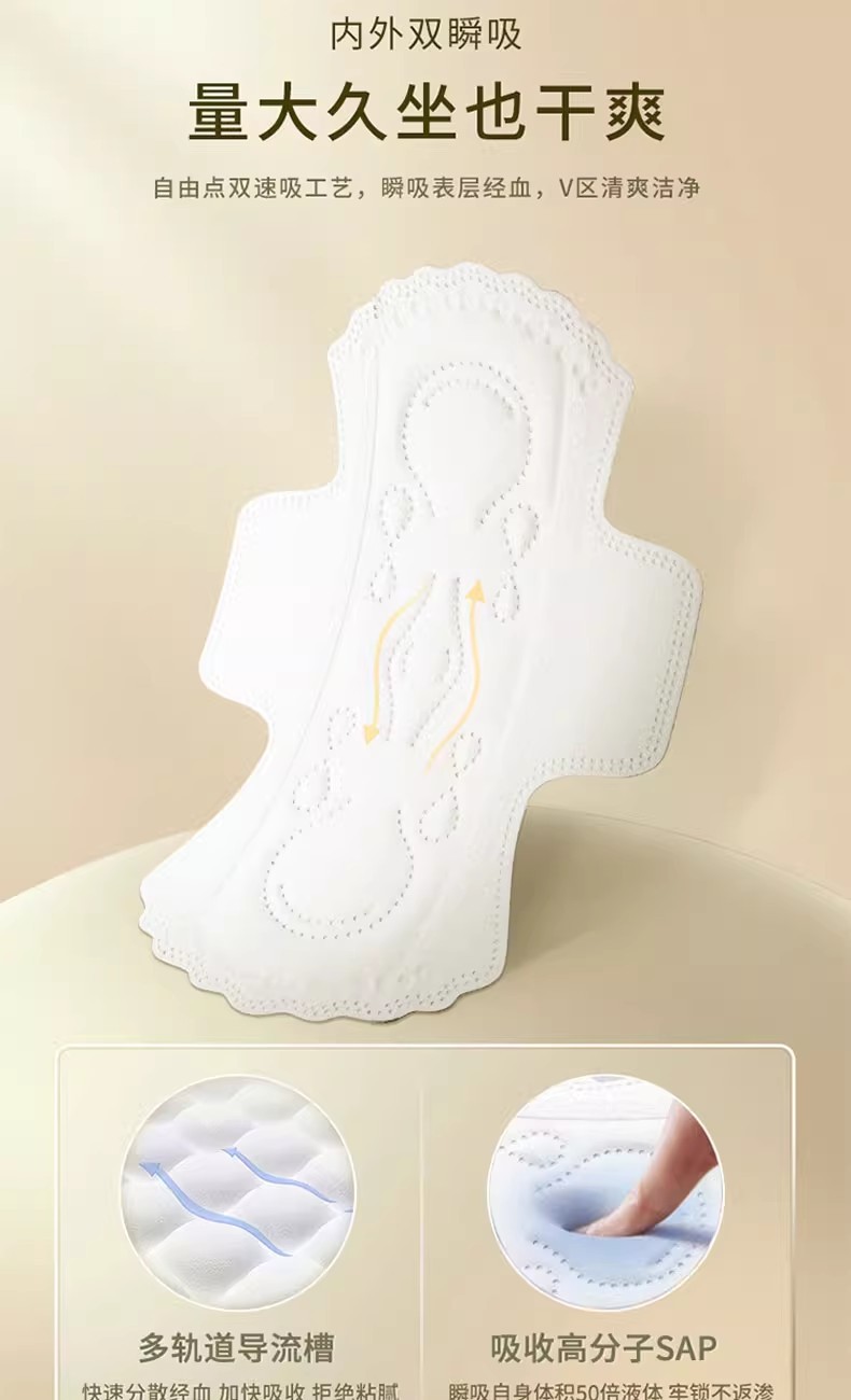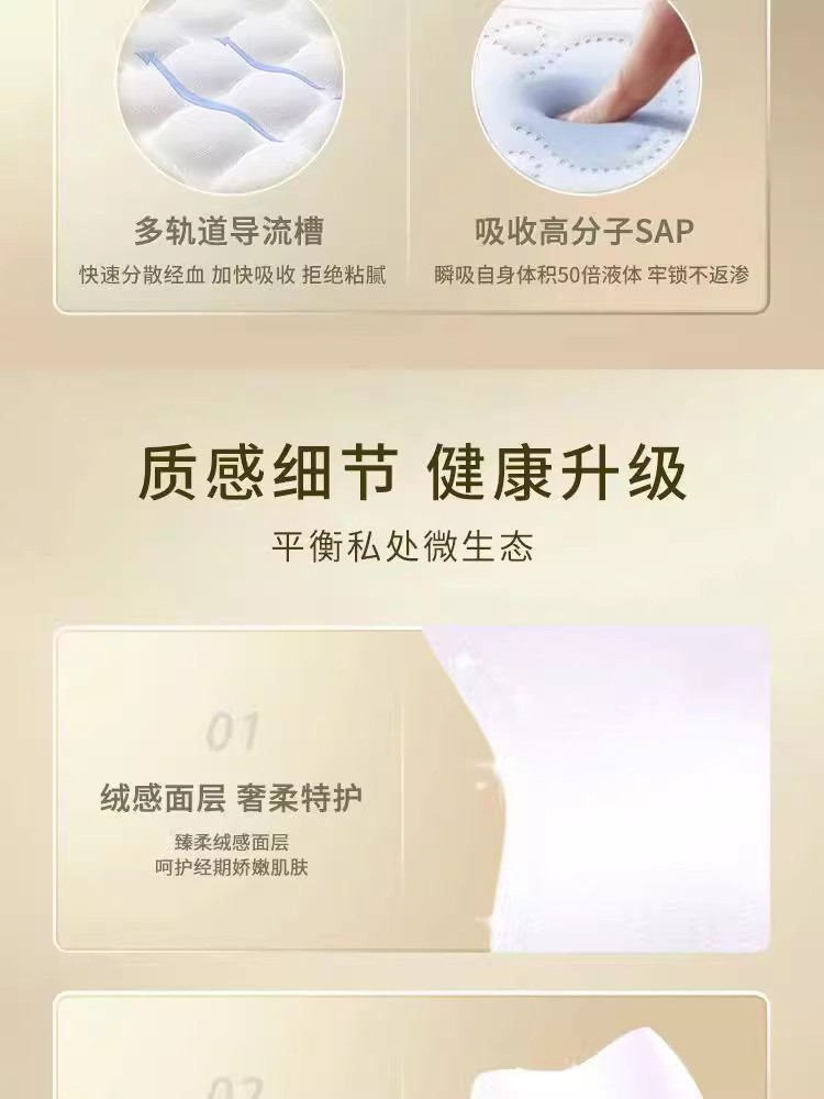 ![]() | Zero-touch ultra-thin cotton soft surface sanitary napkin with large quantity and long night use 400mm 8 pieces barcode: 431023 box size: 24 | ¥17.2 / ≈ 207 ₽ | 99999 | 5898507501667 | |