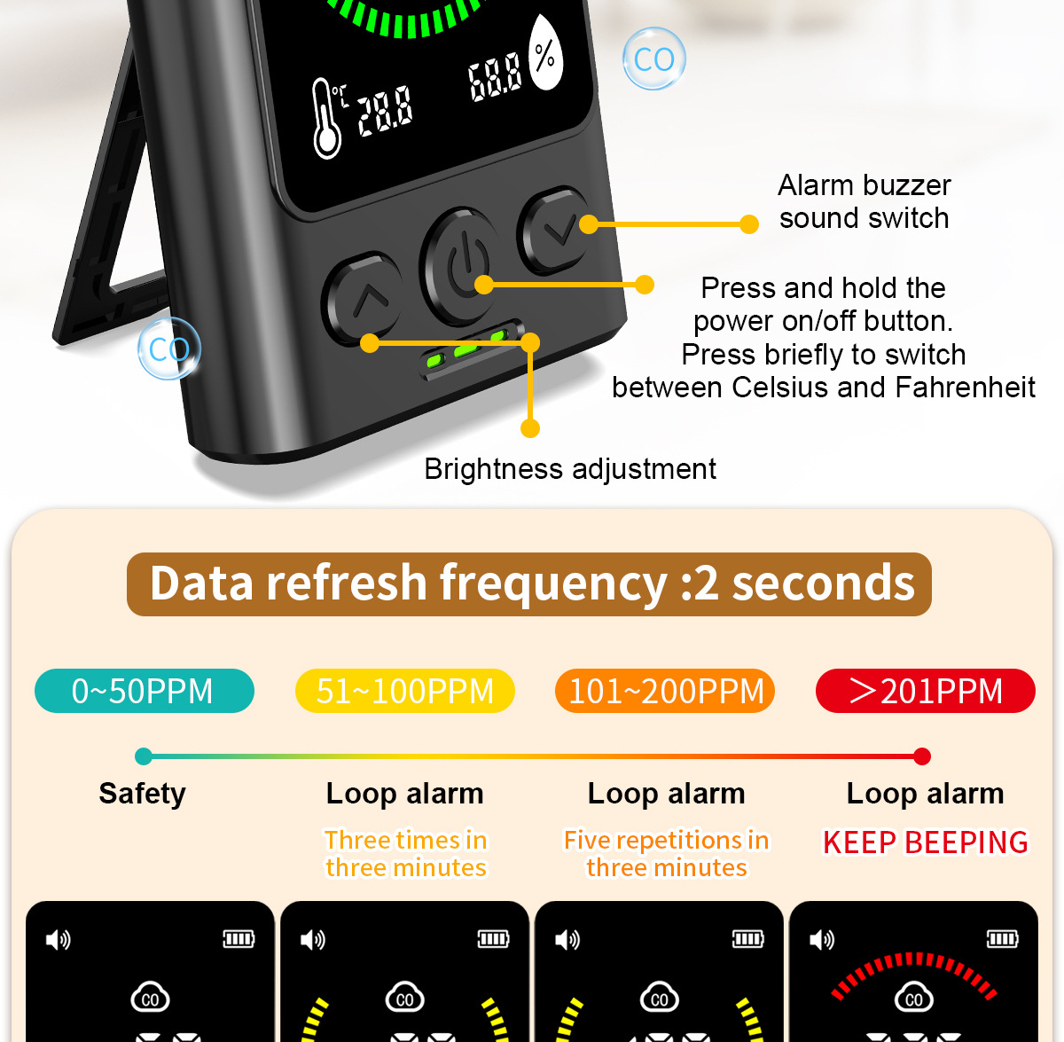 Кросс-бордерный уличный детектор угарного газа, промышленный, подключаемый, токсичный газ, детектор воздуха