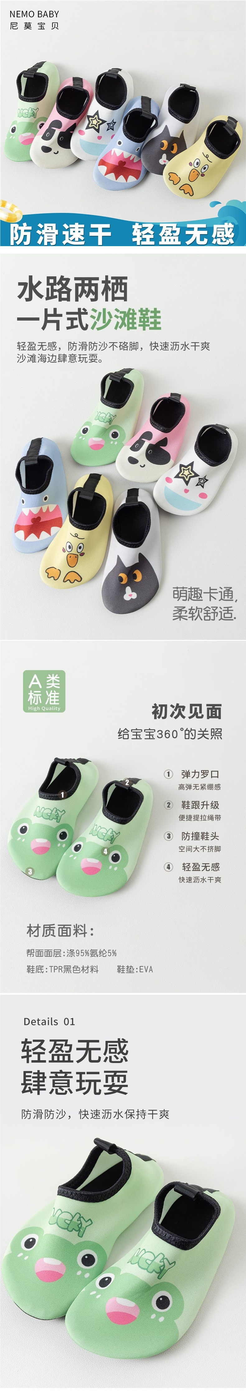 Детские пляжные обувь и носки Nemobaby, мультяшные для мальчиков и девочек, для снорклинга, обувь для быстрого высыхания, нескользящие плавательные туфли