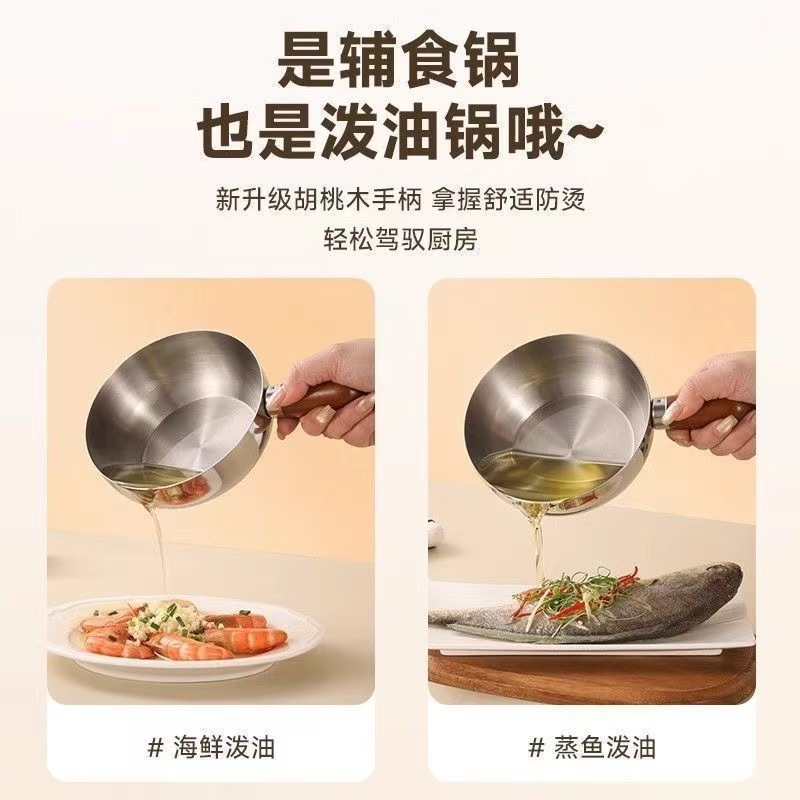 Нержавеющая сталь, чаша для лапши, кастрюля для продуктов, чаша для фруктового салата, кастрюля с ореховой ручкой, домашняя сковорода, кастрюля от брызг масла, маленькая молочная кастрюля