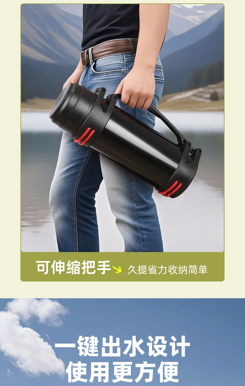 Термос из нержавеющей стали, большой объем 5 литров, для мужчин, портативная бутылка для воды, автомобильный, для путешествий, холодная вода