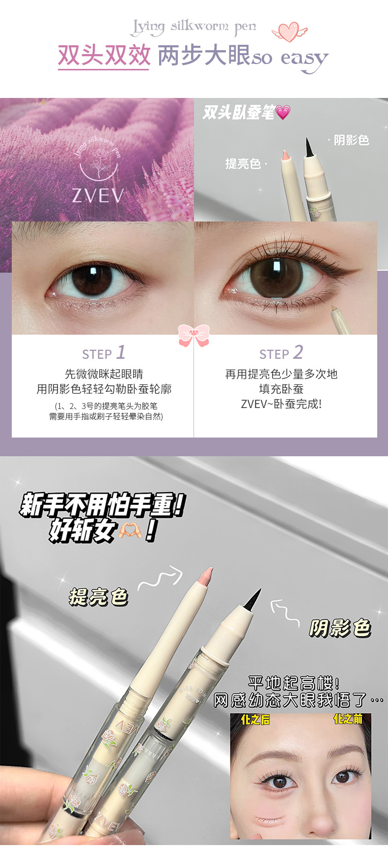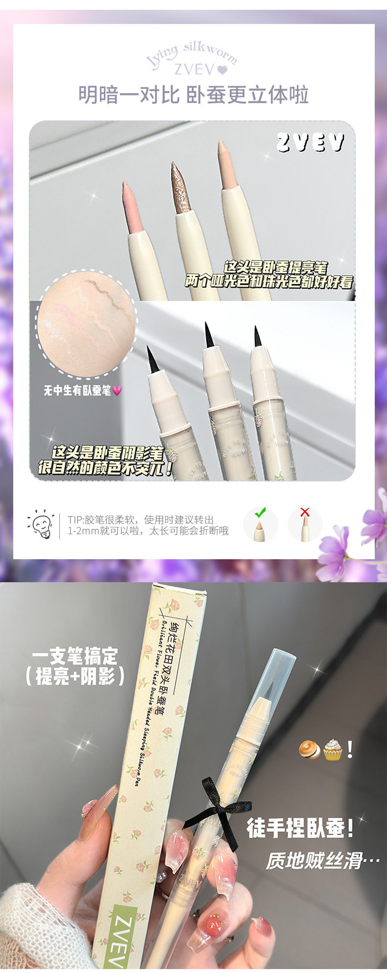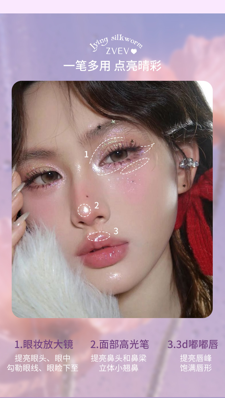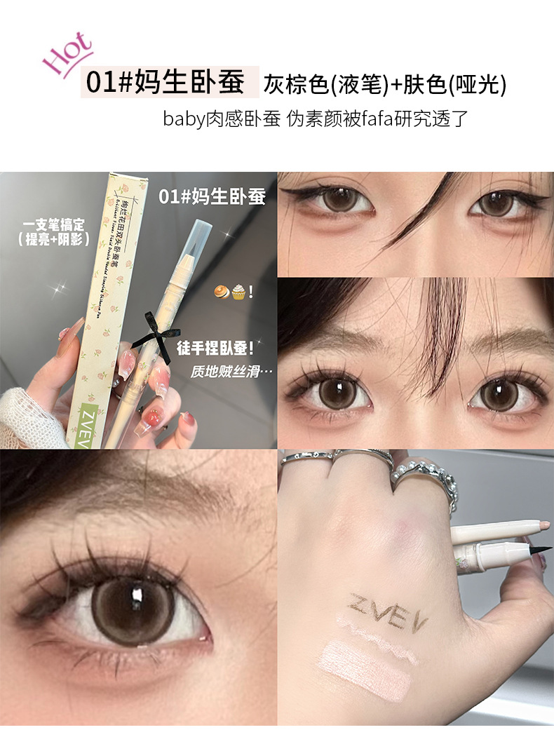 Двусторонний карандаш Zvev Brilliant Flower Field для коконов, осветляющий, перламутровый, многофункциональный, естественно контурирует