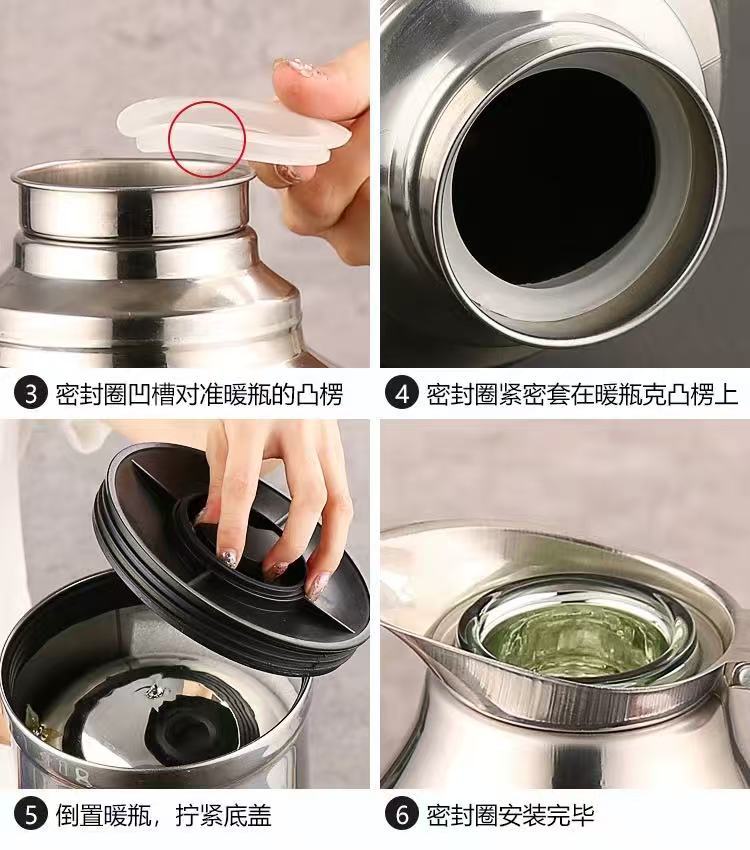 Термос Прокладка герметичная для бутылки с горячей водой Силиконовая прокладка пищевого качества Устойчива к высоким температурам для кипятка Термос с кожаным чехлом