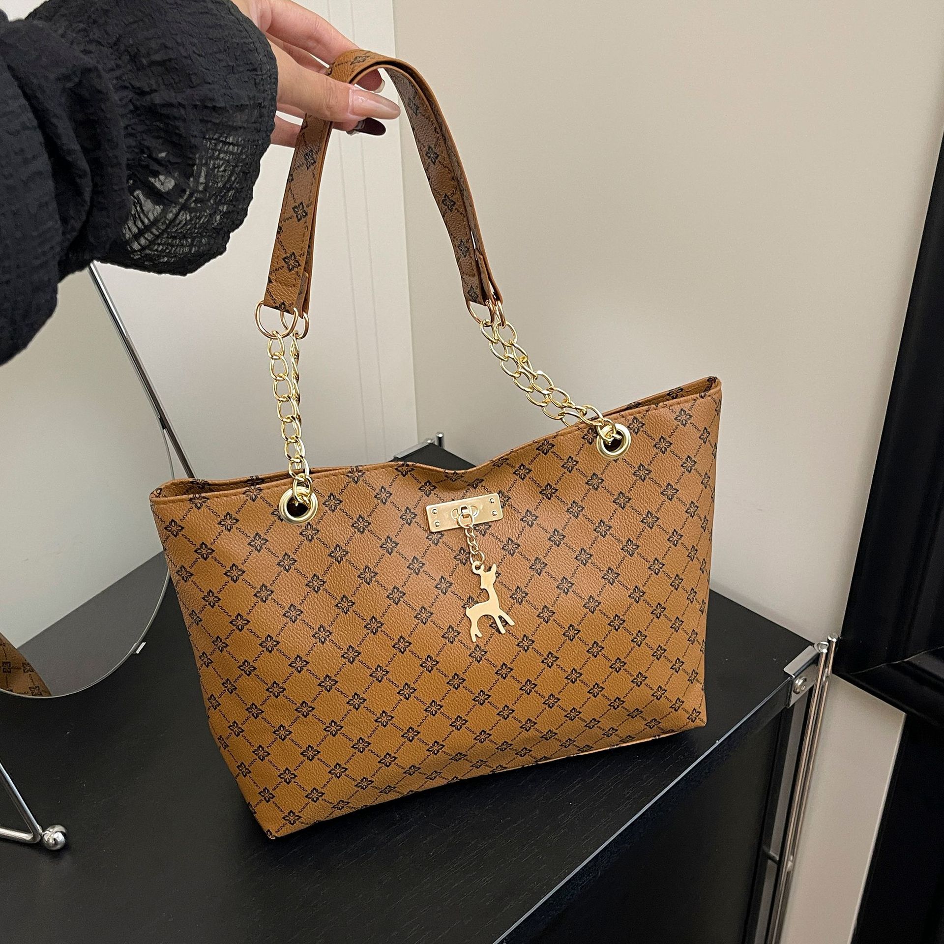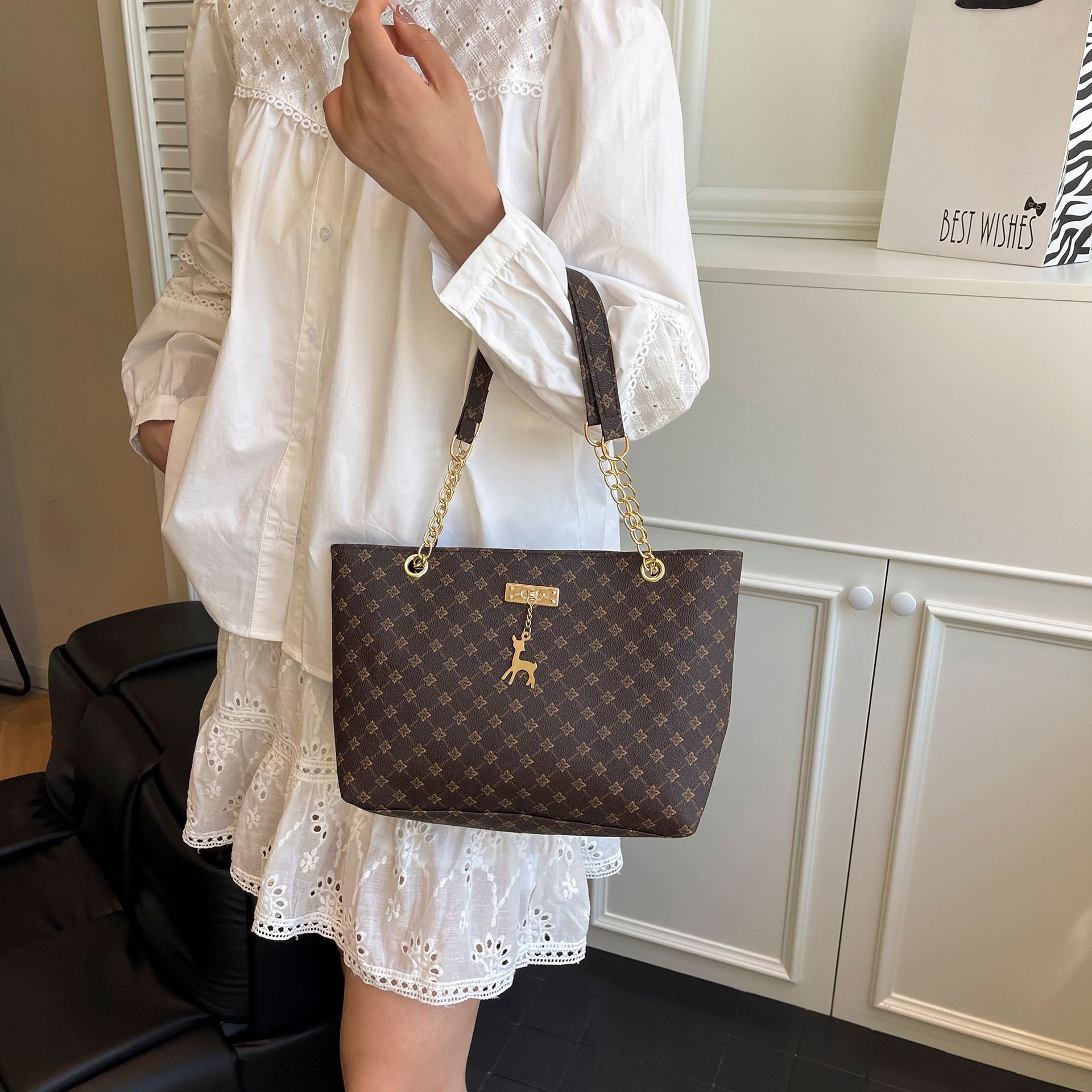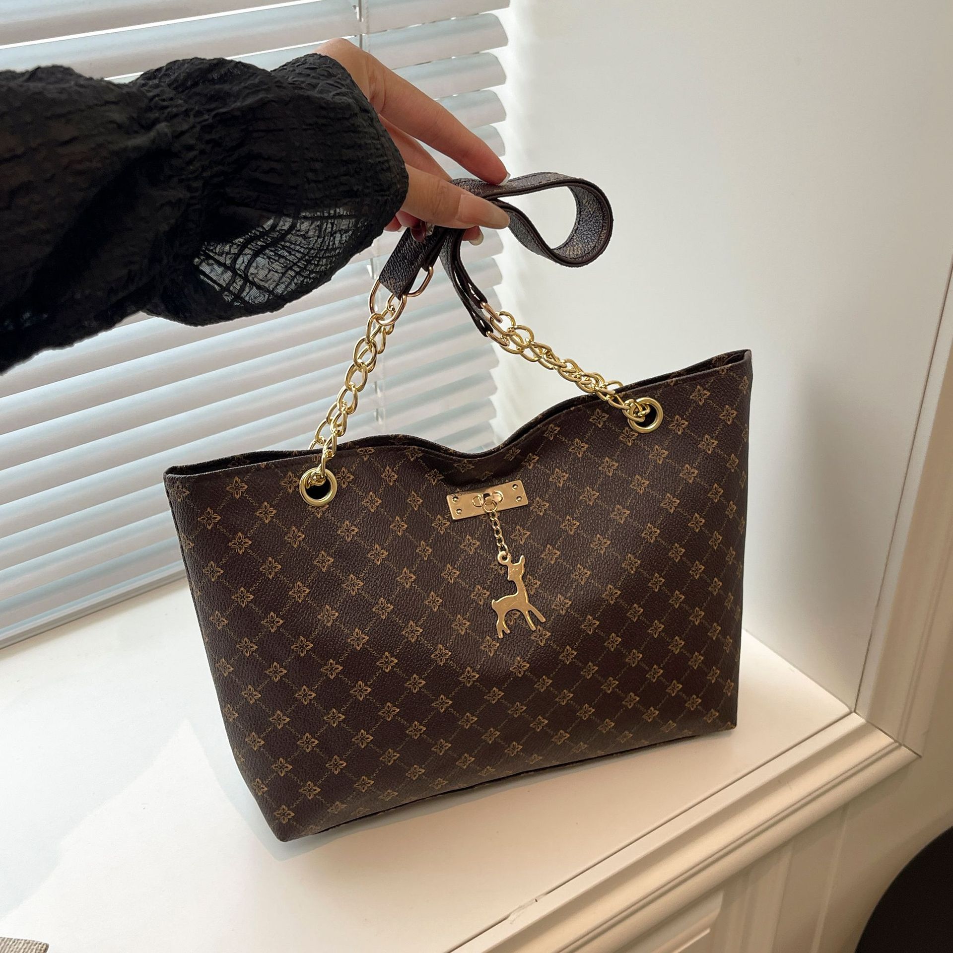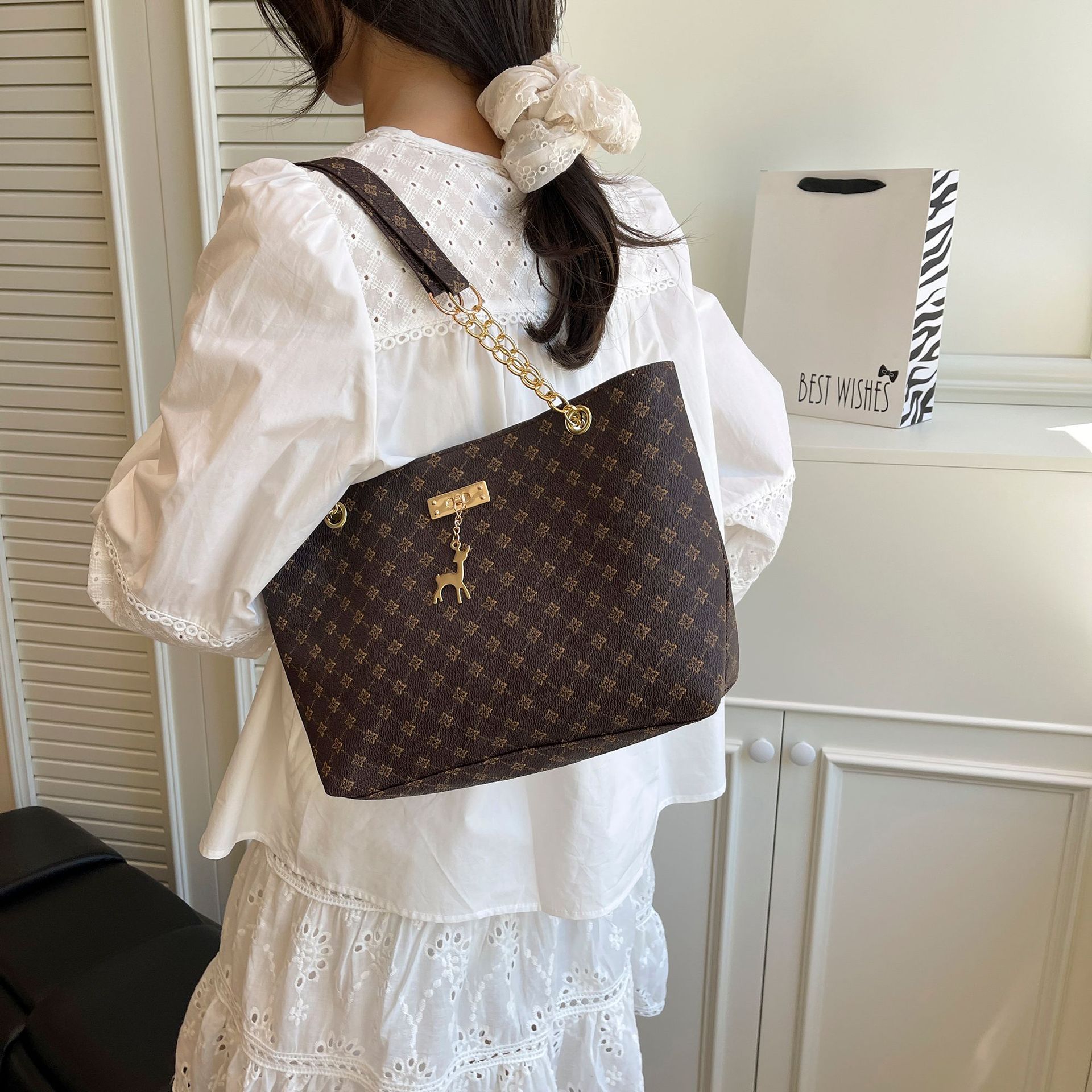 Повседневная ретро большая сумка-тоут женская 2023 новая популярная, легкая в сочетании, сумка через плечо оленя, сумка для commuting