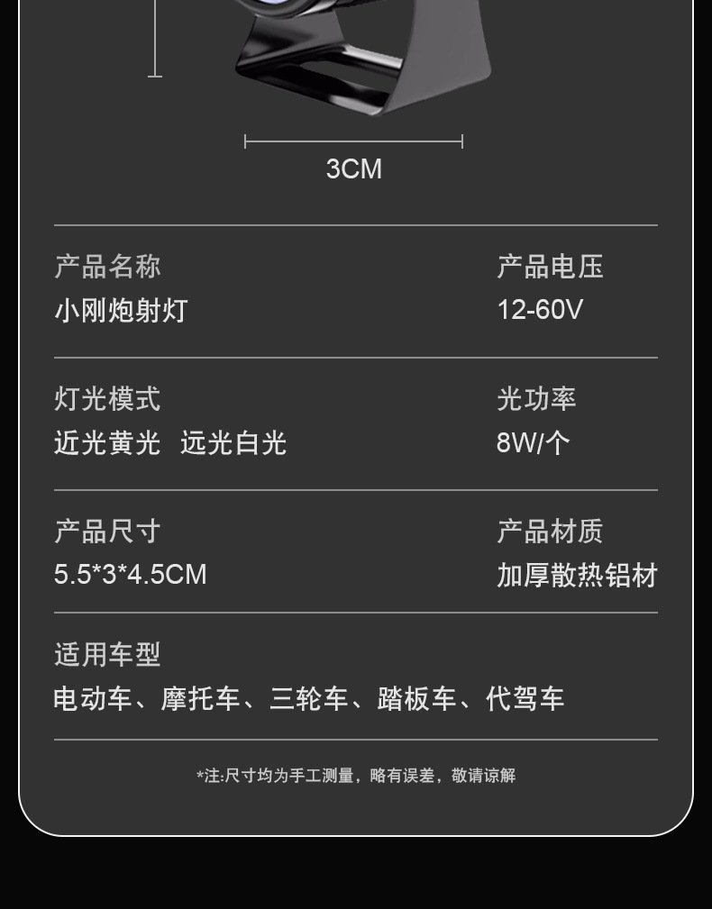 ![]() | Far white and near yellow | 12w small steel cannon + bracket (12-60v two-year warranty) | ¥7.9 / ≈ 95 ₽ | 9908 | 5976280601376 | |
