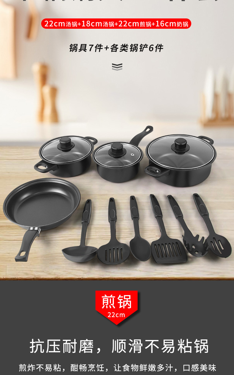Популярный набор из 13 предметов: кастрюли, лопаты, антипригарные суповые кастрюли, молочные кастрюли, сковороды, кастрюли из медицинского рисового камня, многофункциональные наборы