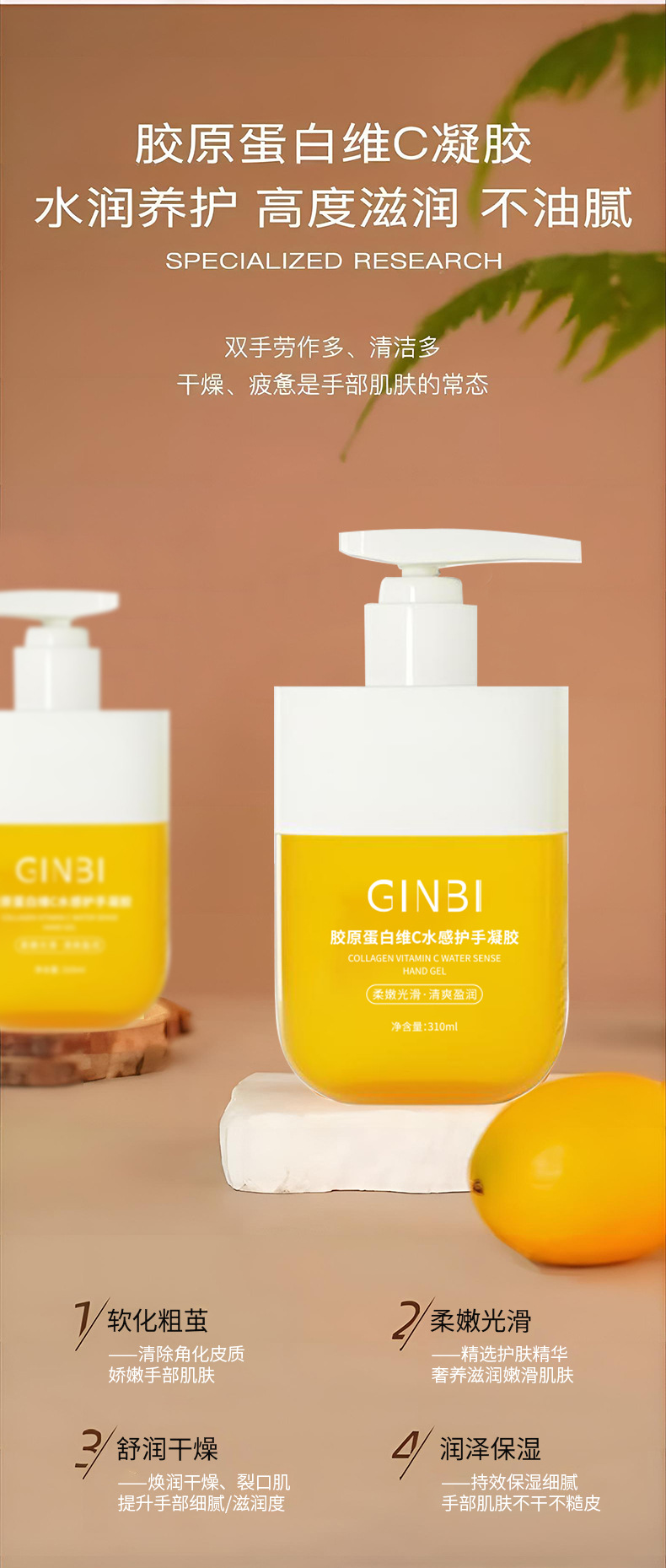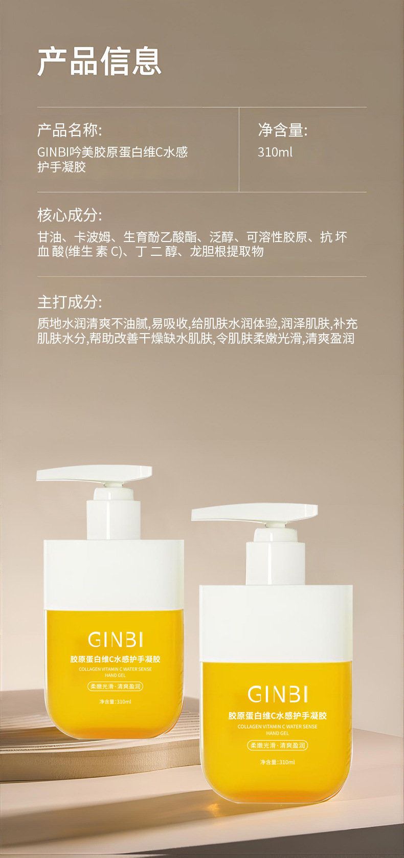 Гель для рук Yinmei с коллагеном и витамином C, увлажняющий и нежный, освежающая текстура, оптовая продажа