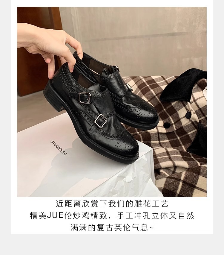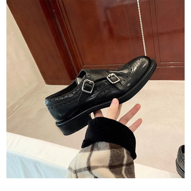 Туфли на толстой подошве для женщин, весна 2025, британский стиль, толстый каблук, французские, высококачественные, ретро лоферы, натуральная кожа