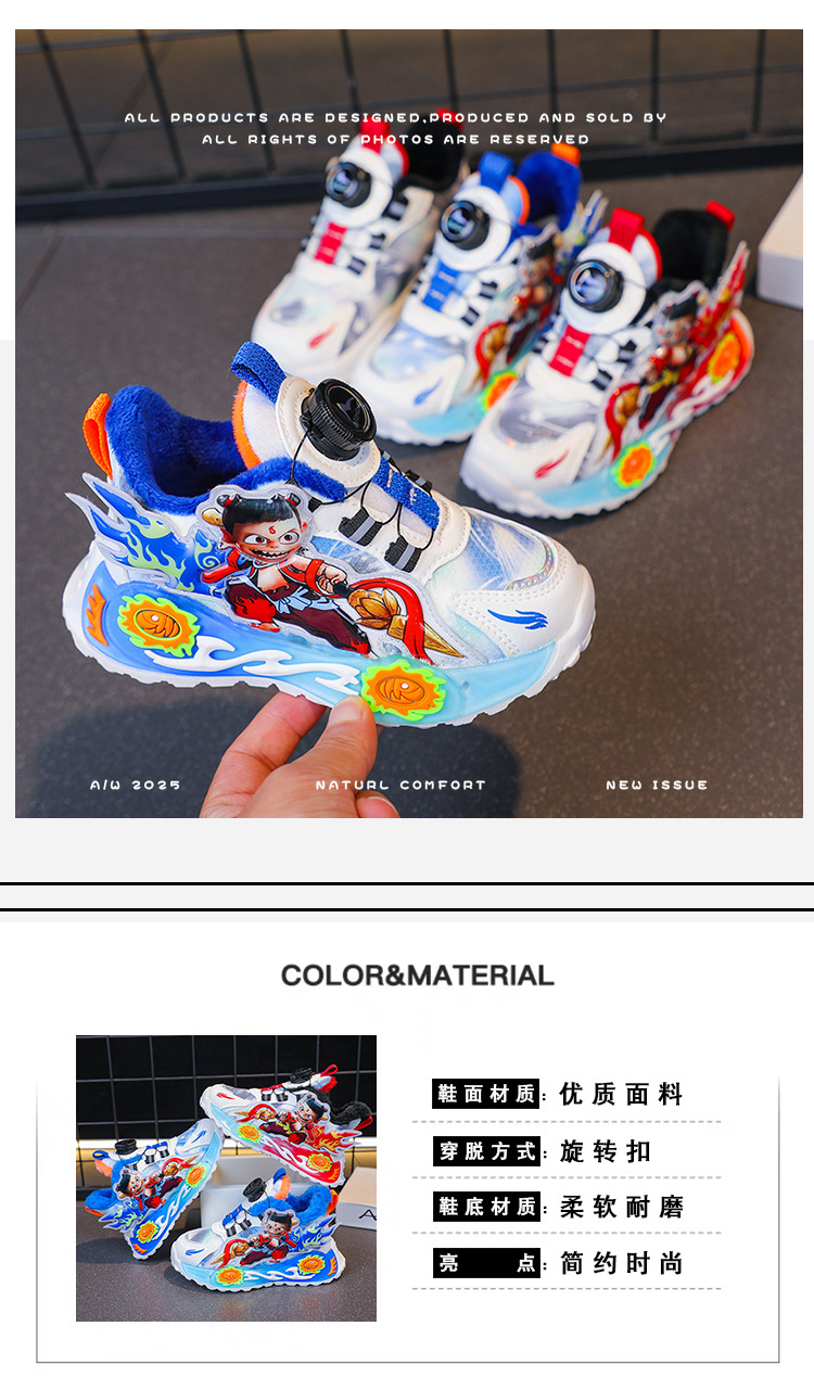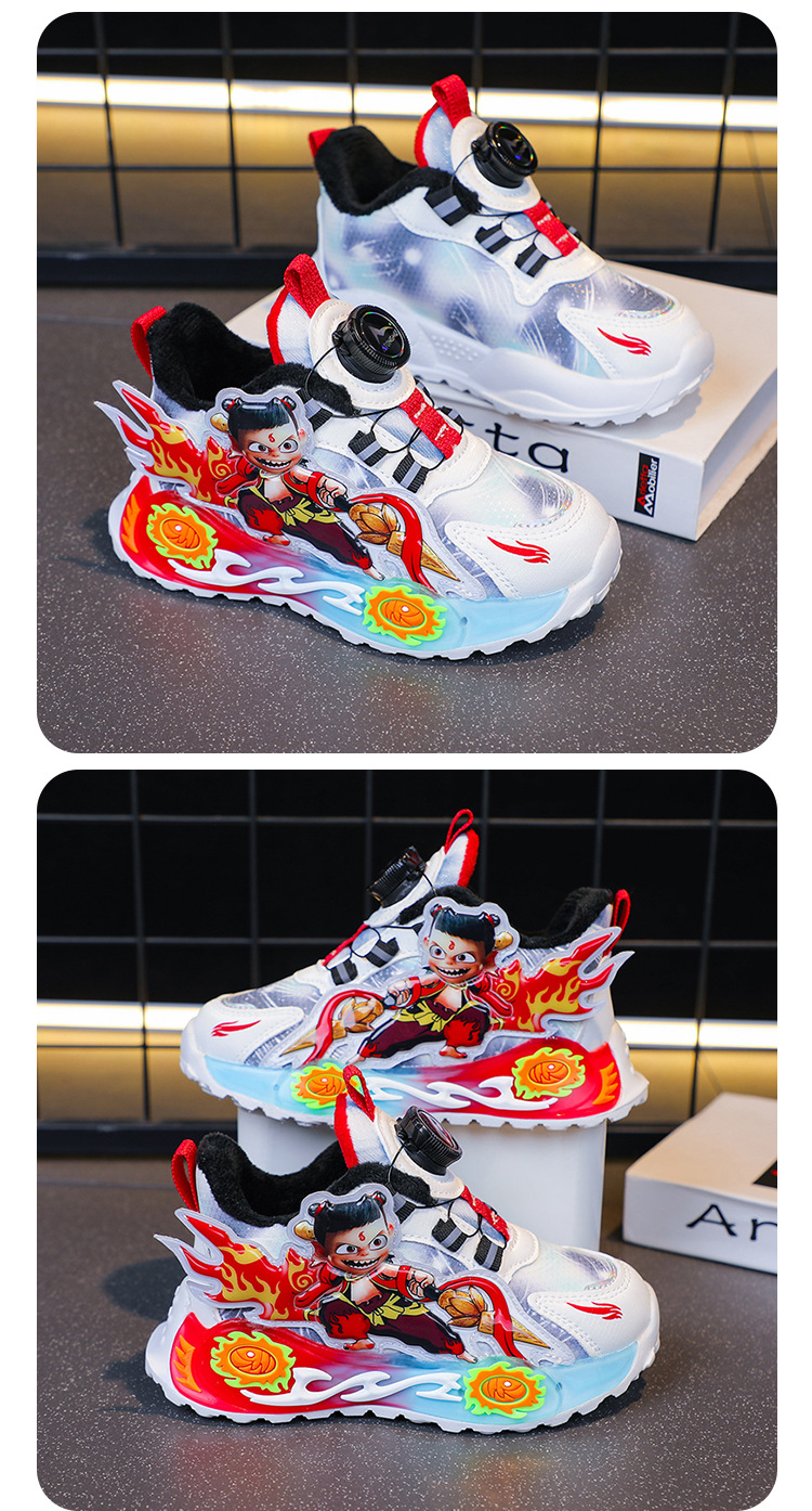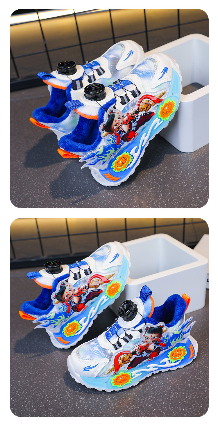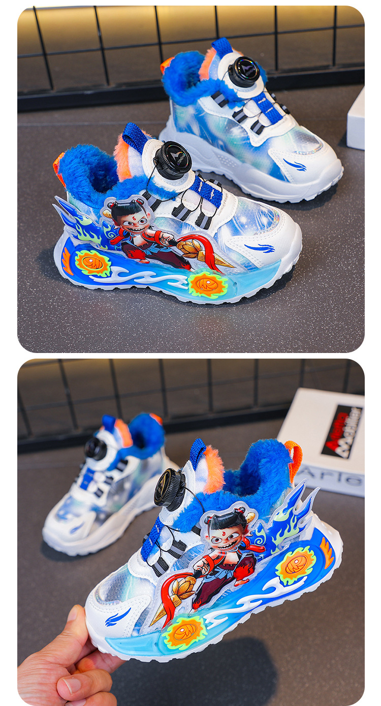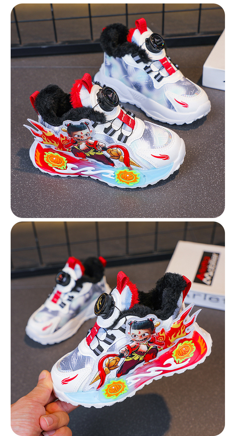 Оптовые детские спортивные туфли 2025 осень-зима, новая кожа с флисовой подкладкой, теплые туфли для мальчиков Nezha, мягкие подошвы для бега