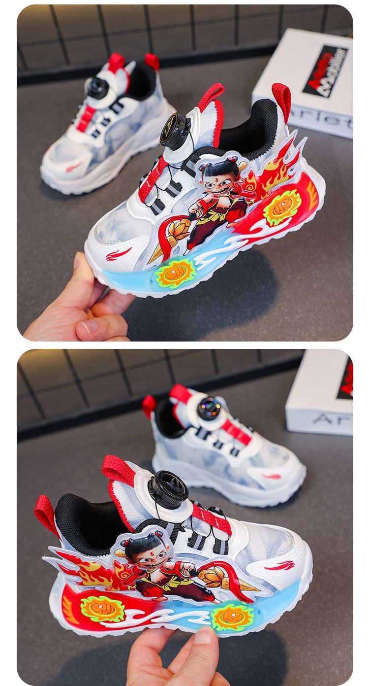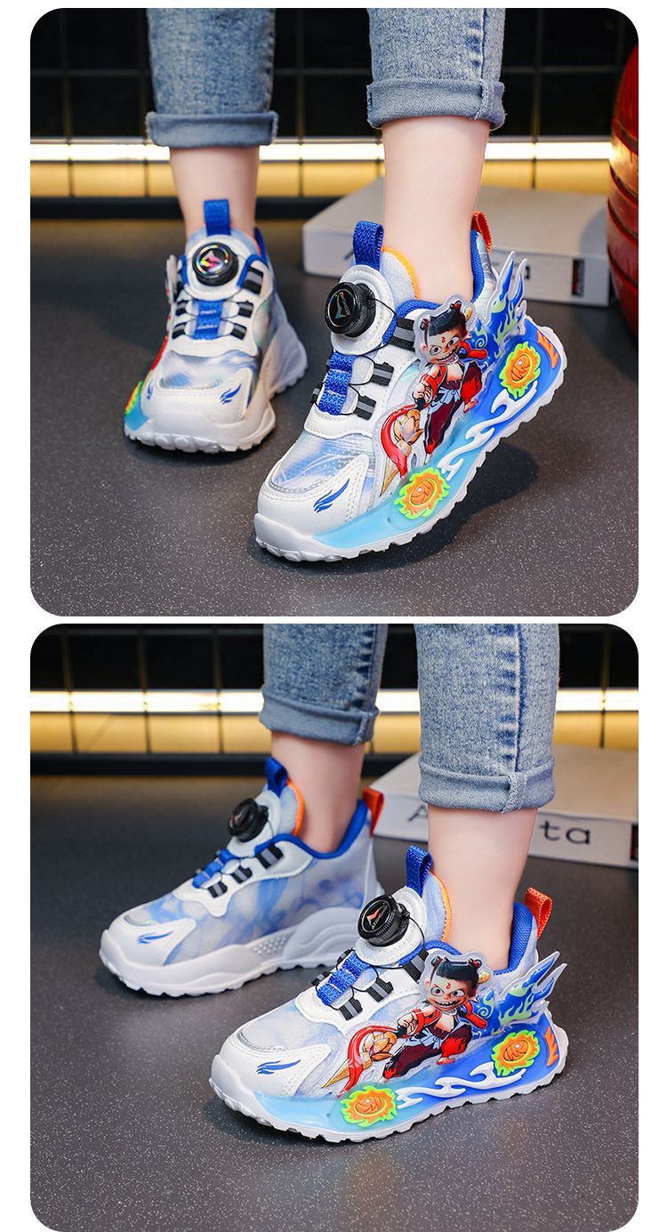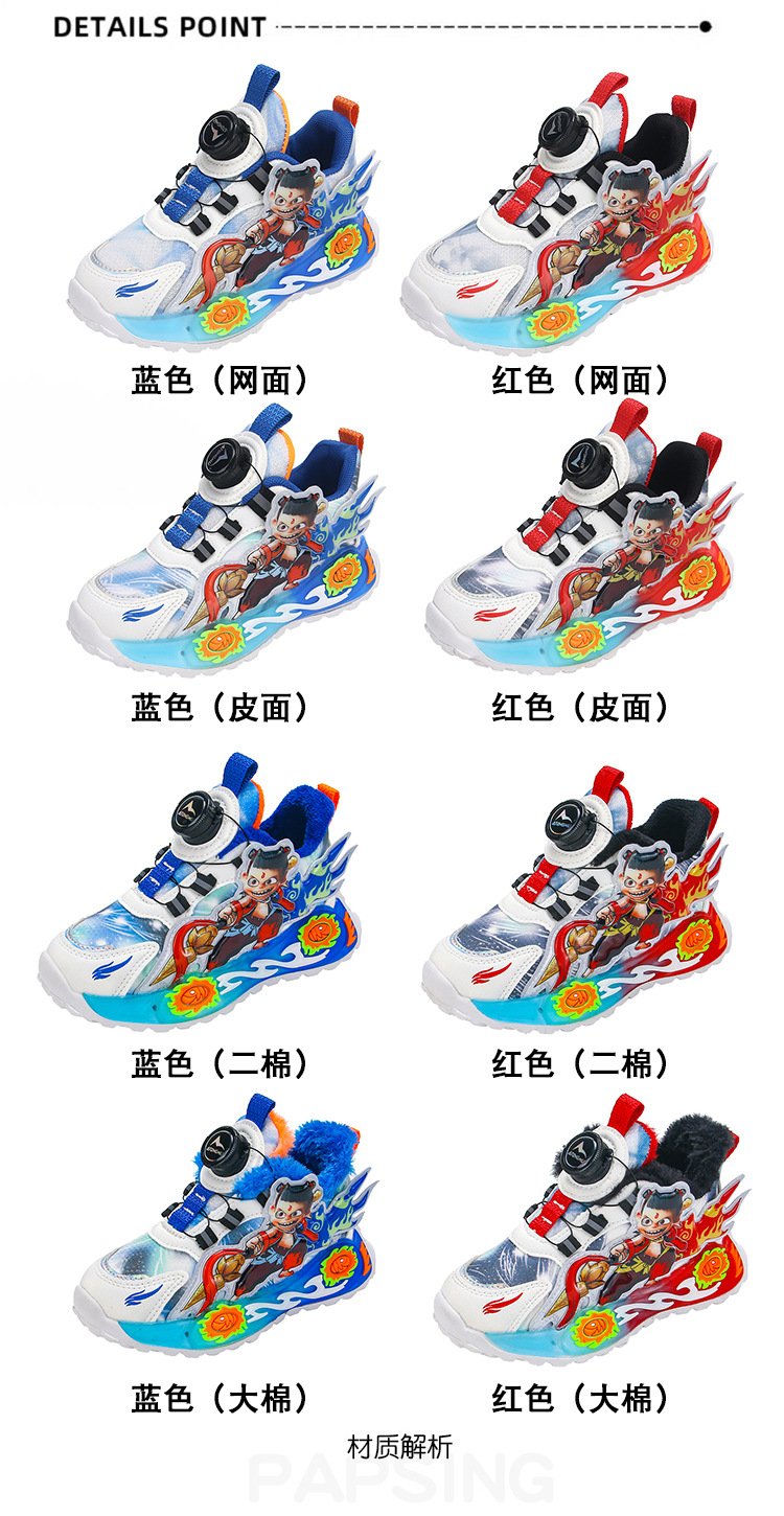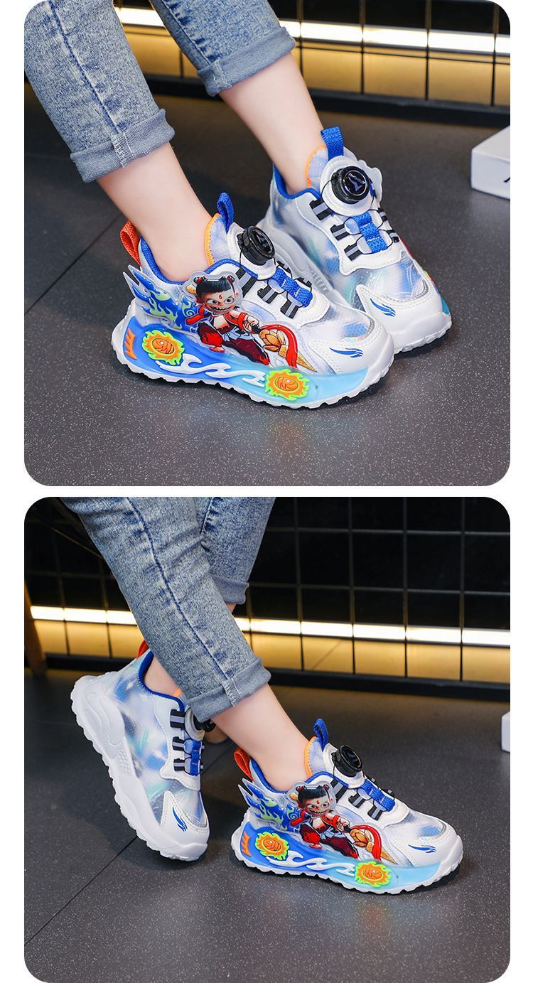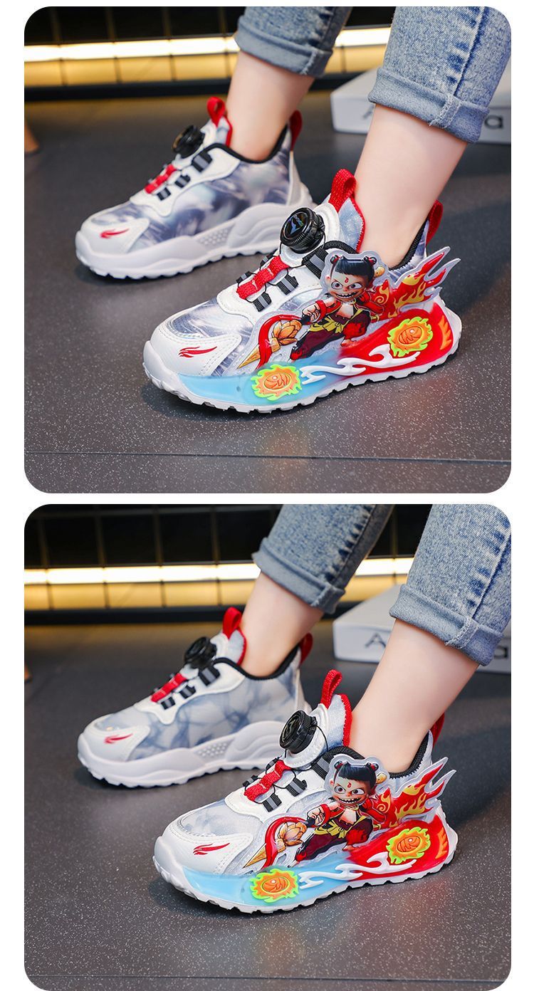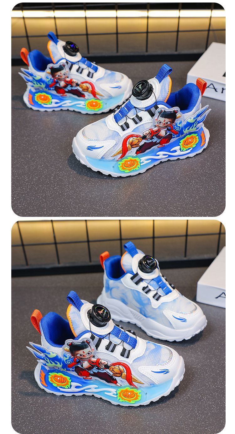 Оптовые детские спортивные туфли 2025 осень-зима, новая кожа с флисовой подкладкой, теплые туфли для мальчиков Nezha, мягкие подошвы для бега