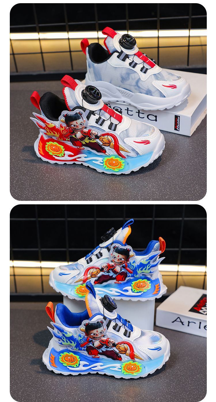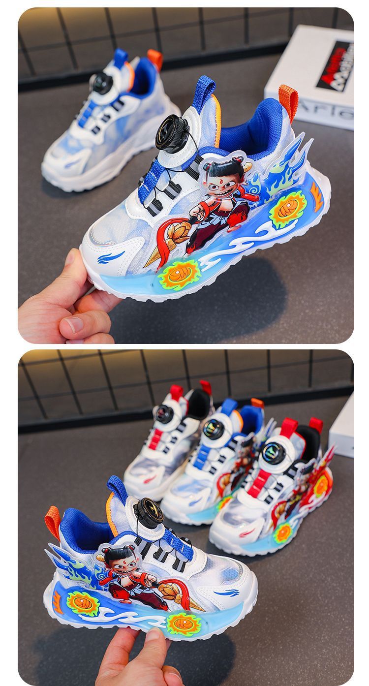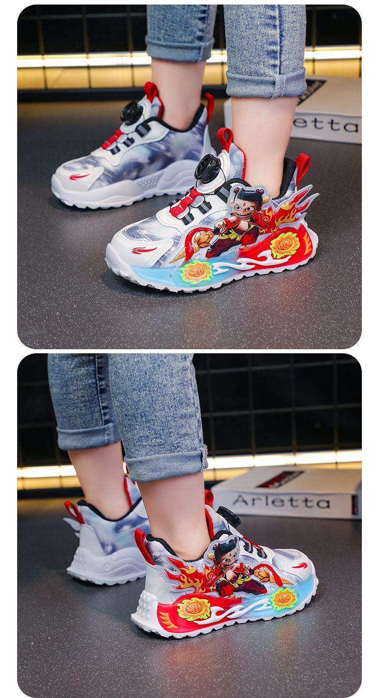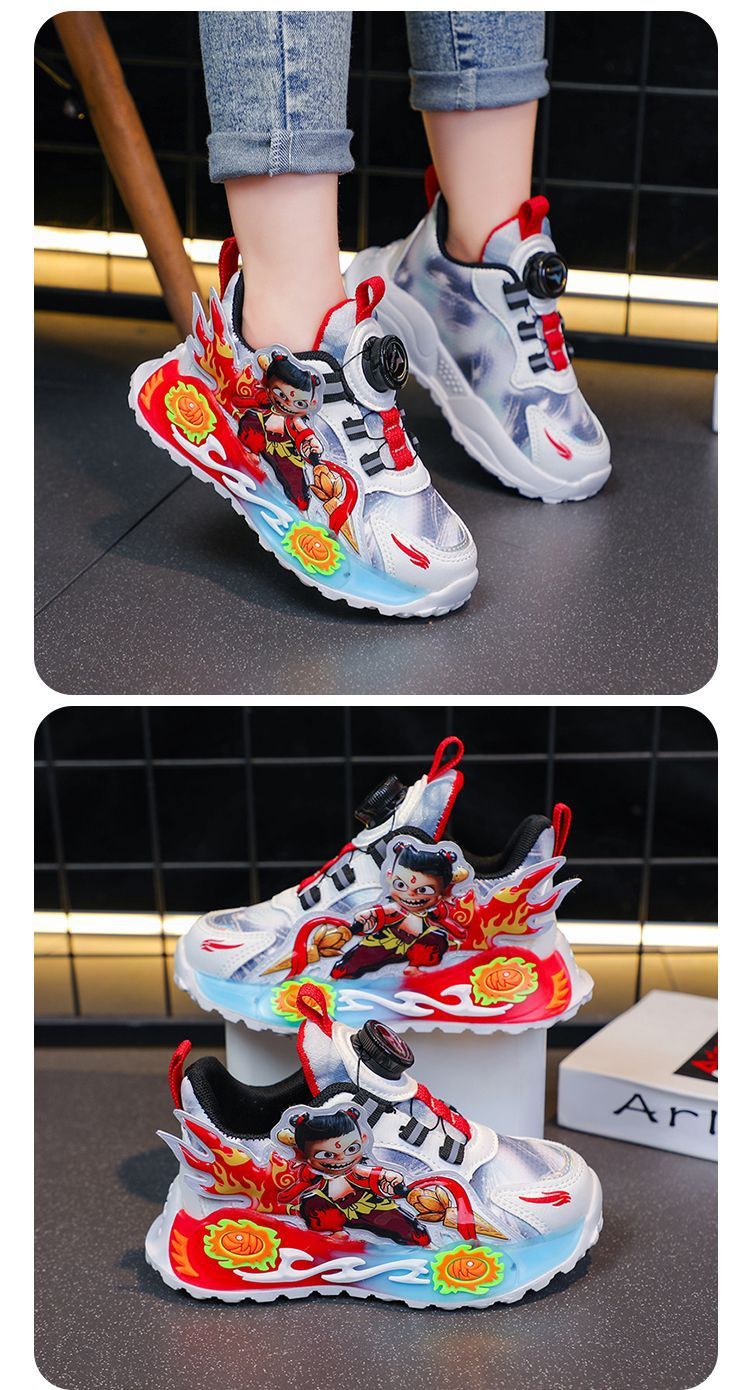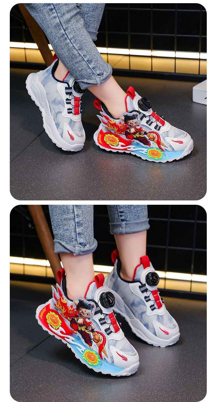 Оптовые детские спортивные туфли 2025 осень-зима, новая кожа с флисовой подкладкой, теплые туфли для мальчиков Nezha, мягкие подошвы для бега