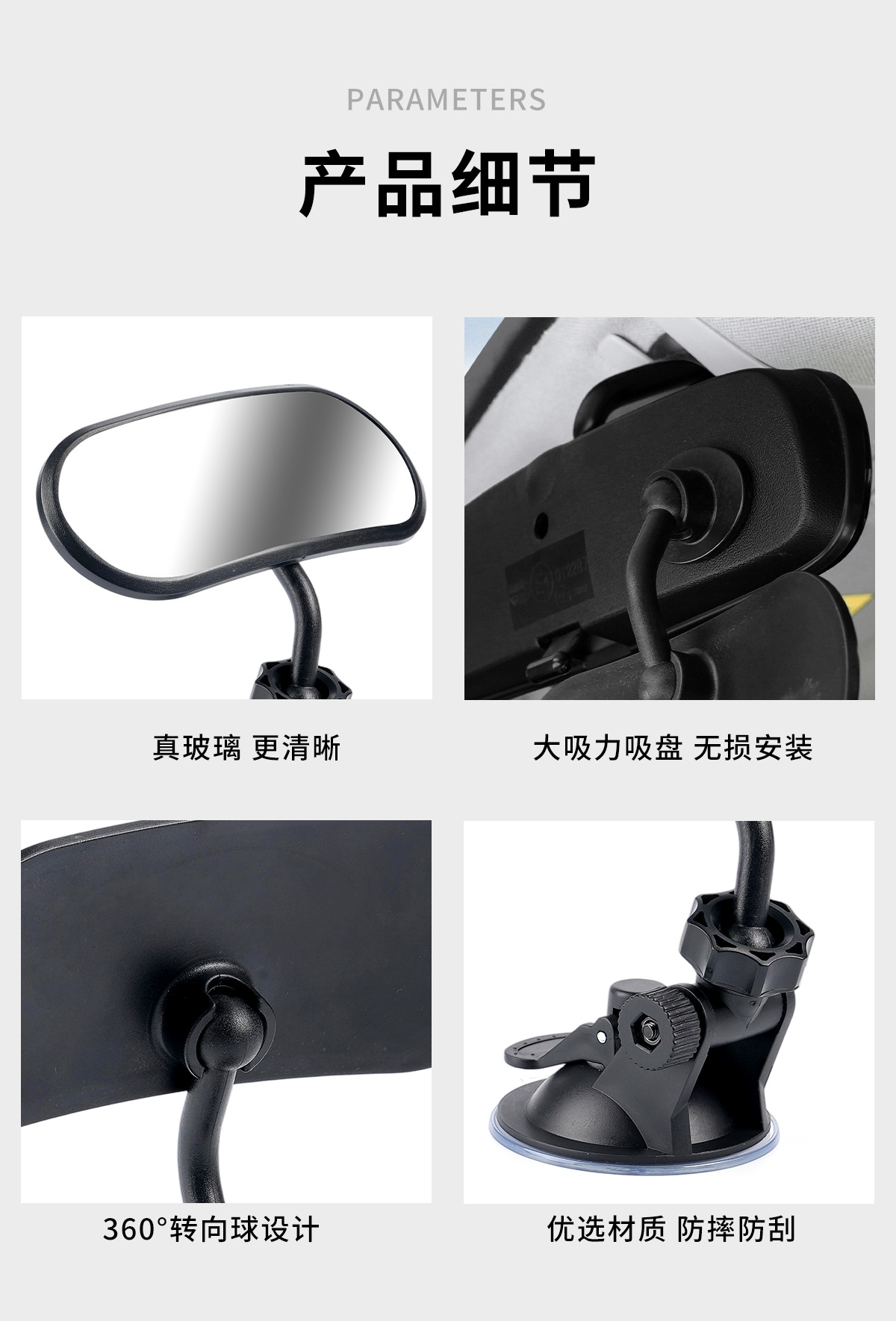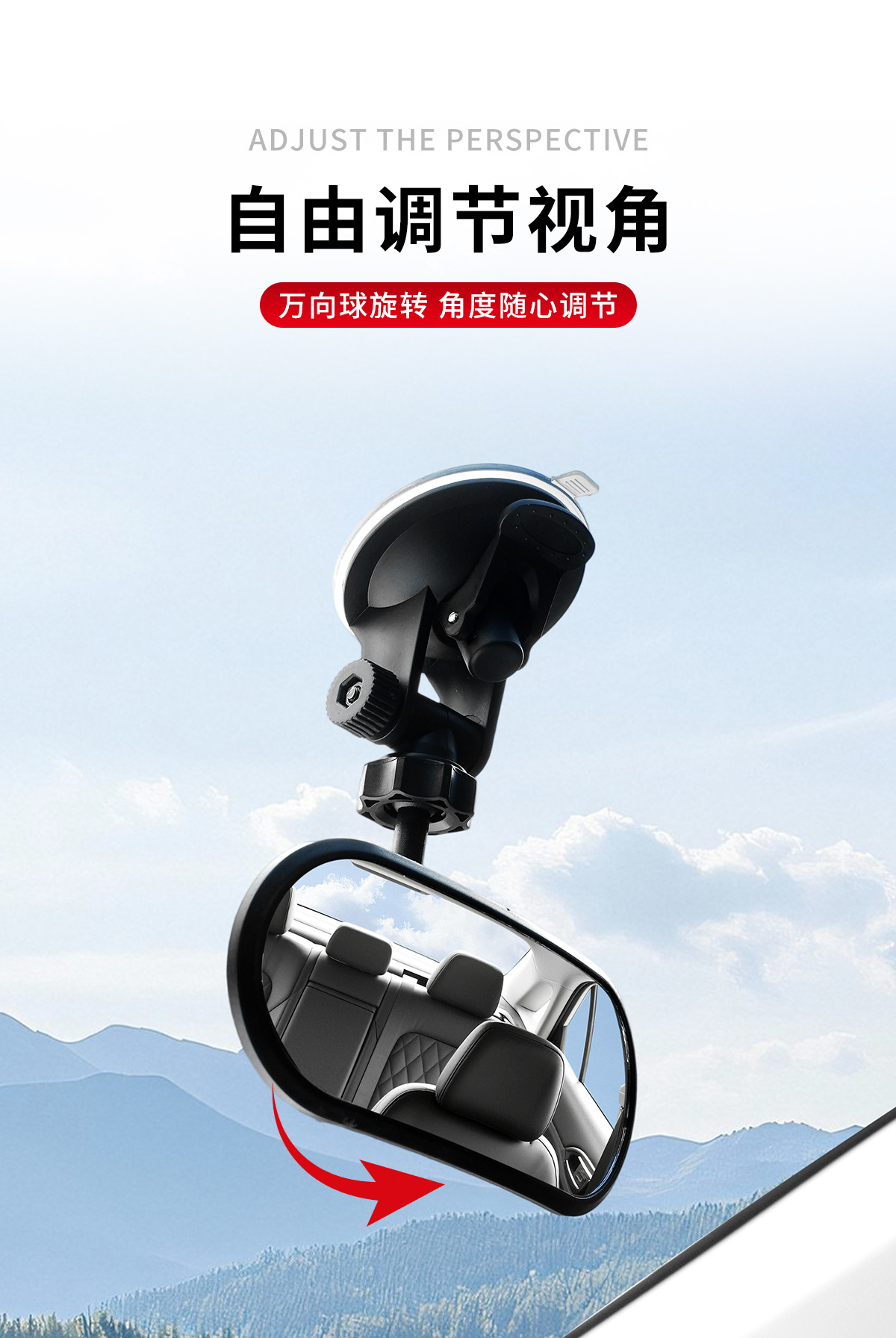 Дополнительное зеркало заднего вида для автомобиля, внутреннее зеркало с присоской для наблюдения за ребенком, зеркало для заднего вида, зеркало мертвых зон, большое поле зрения