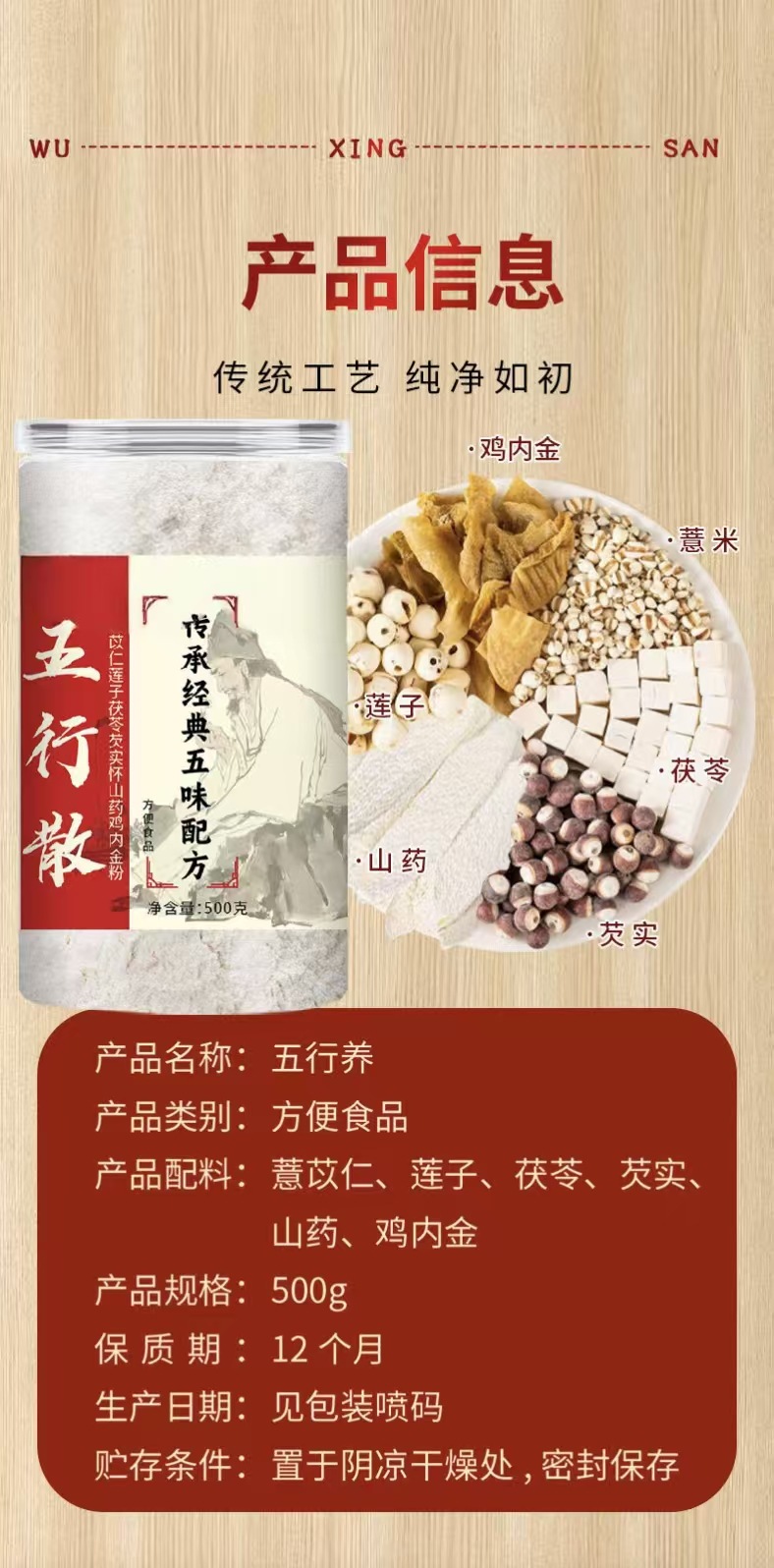Порошок заменителя пищи из пяти злаков с жареными отрубями, ямсом, семенами коикса, порошком лотоса, порошком цельных злаков, питательный заменитель пищи, порошок для завтрака, в наличии