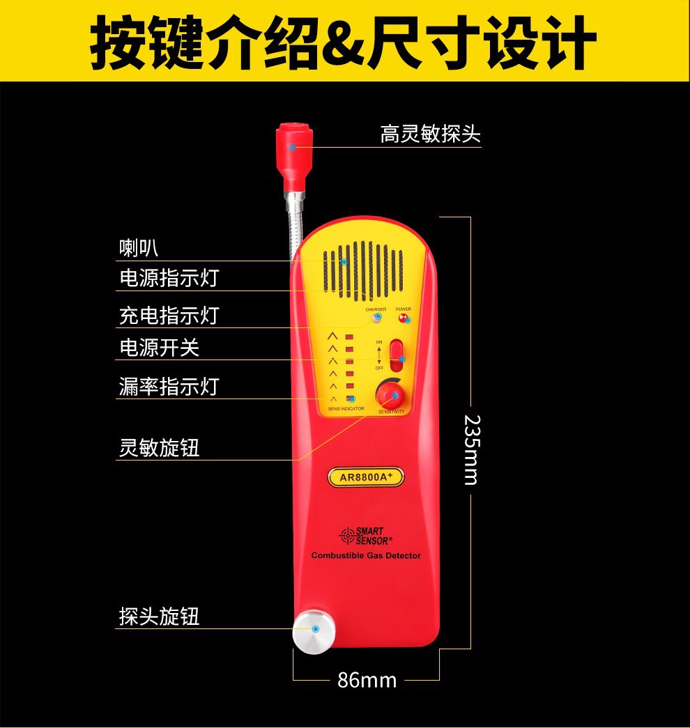 Xima Ar8800A, высокочувствительный детектор горючих газов, цифровой дисплей, сигнализация о горючем природном газе и сжиженном газе