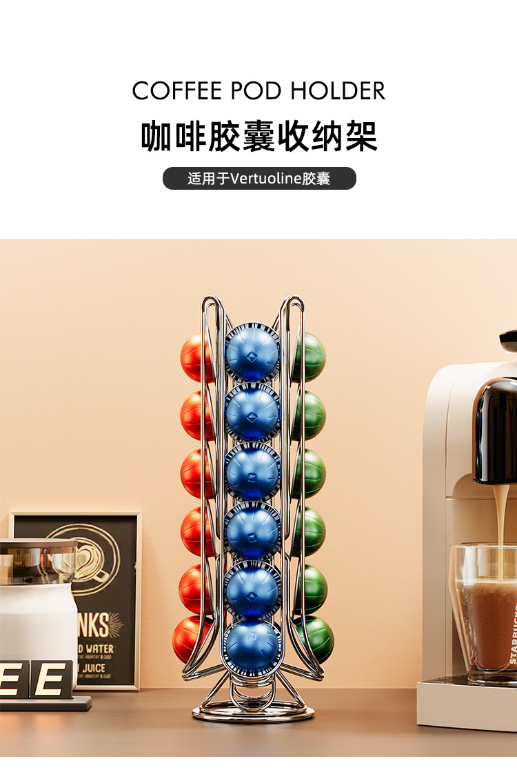 Настольная подставка для кофе с вращающимся механизмом, витрина для капсул Vertuoline, место для хранения 24 капсул