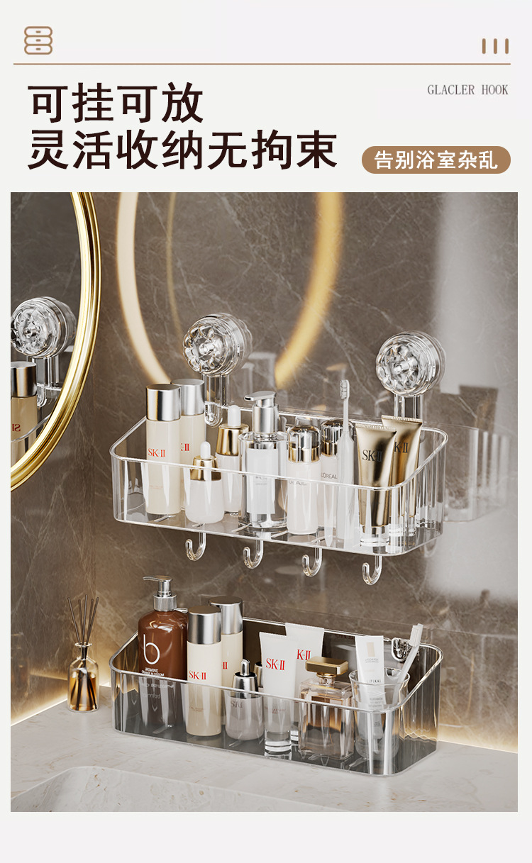 Прямой держатель для хранения на присосках, настенная полка для ванной без сверления, съемный держатель для раковины
