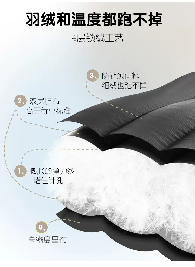 马甲主面料:100%聚酯纤维里料:100%聚酯纤维填充物:鸭绒 绒子含量85%局部填充物:100%聚酯纤维