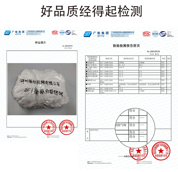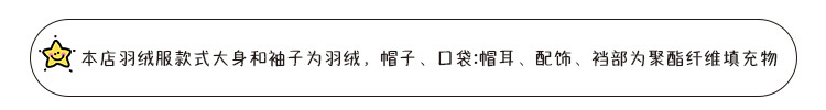 主填充物:鸭绒 绒子含量 85% 局部填充物: 100%聚酯纤维