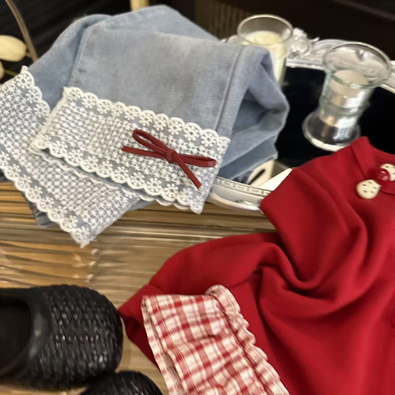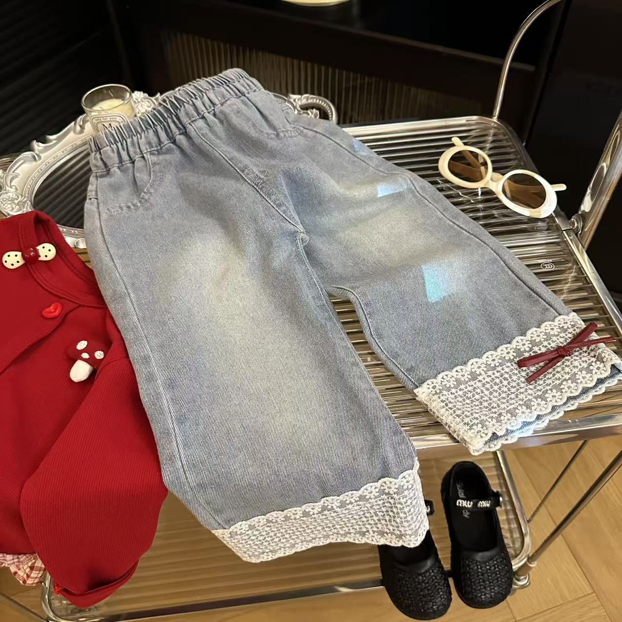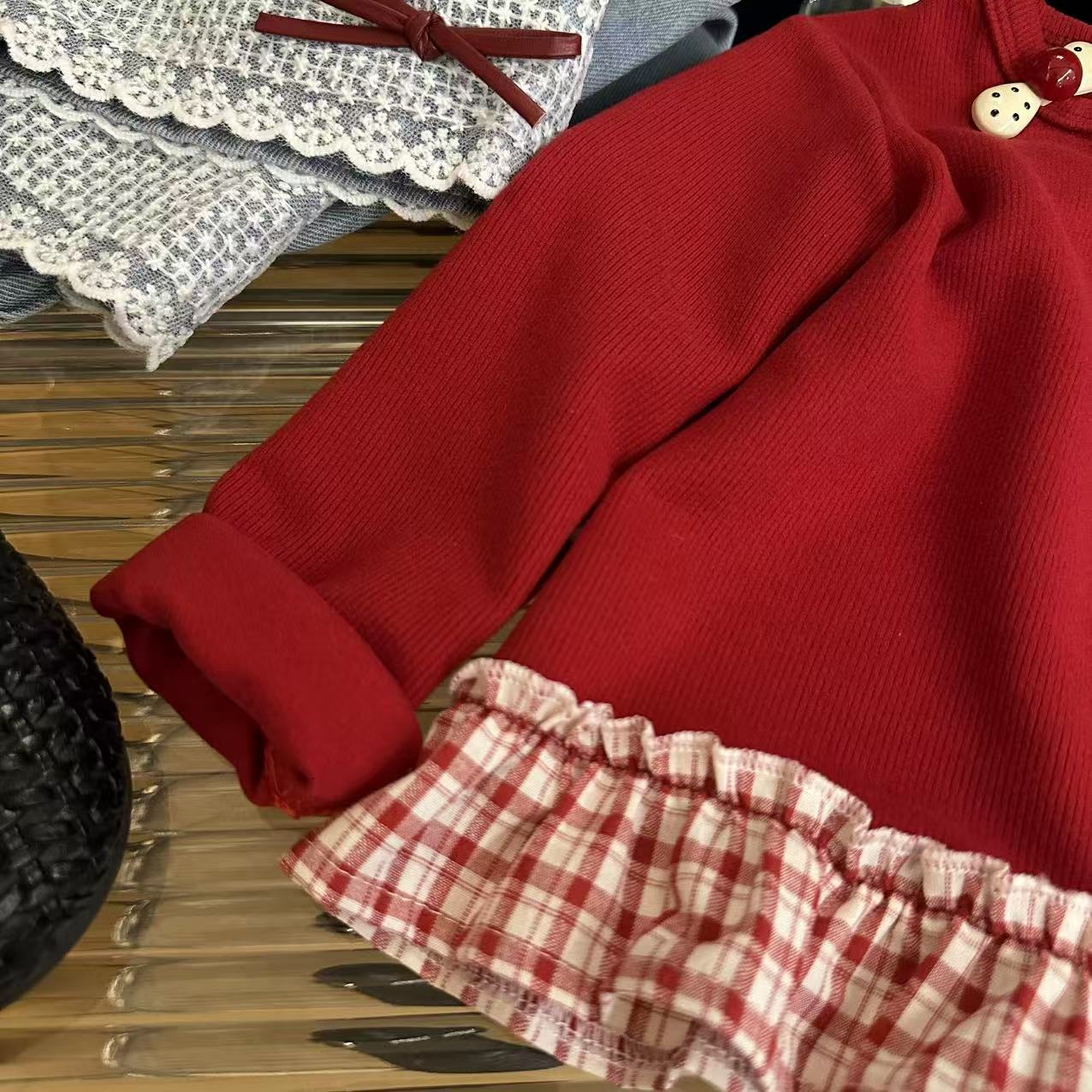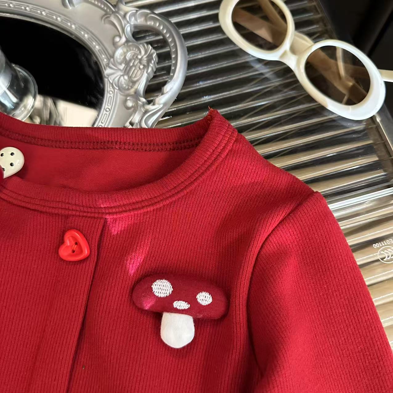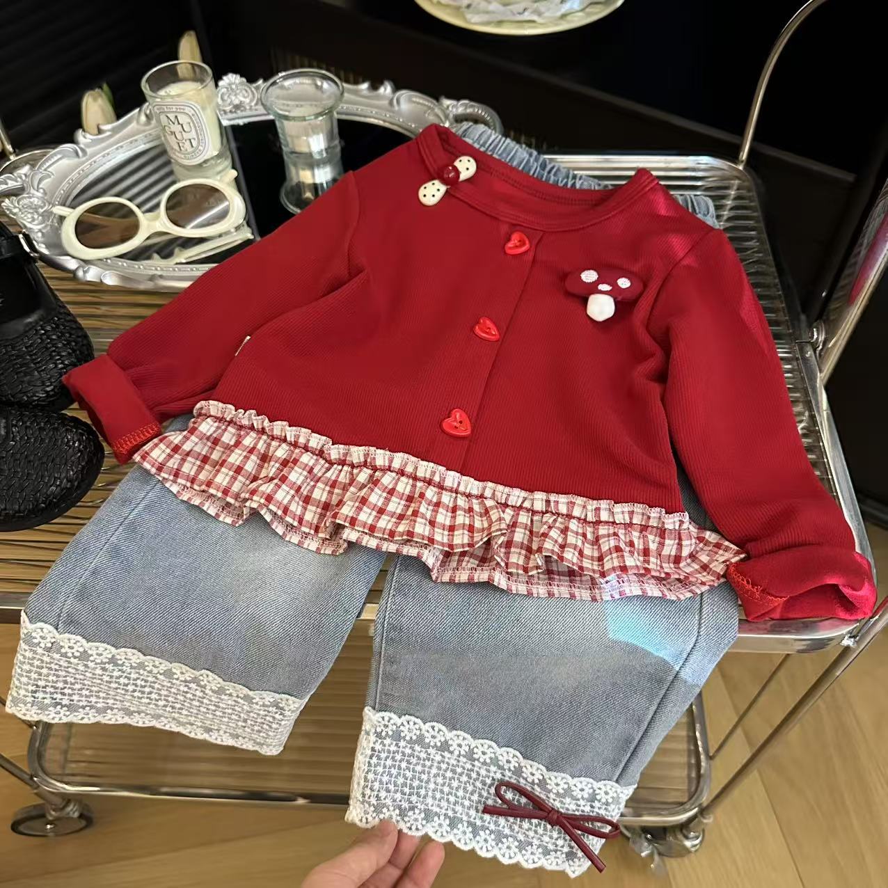 Толстовка для девочек 2025 осень новый корейский стиль повседневная модная милая красная грибная вставка юбка толстовка