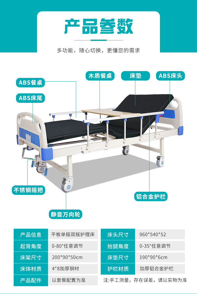 Кровать для домашнего ухода за пожилыми, многофункциональная больничная медсестринская кровать для парализованных пациентов, кровать с ручным приводом