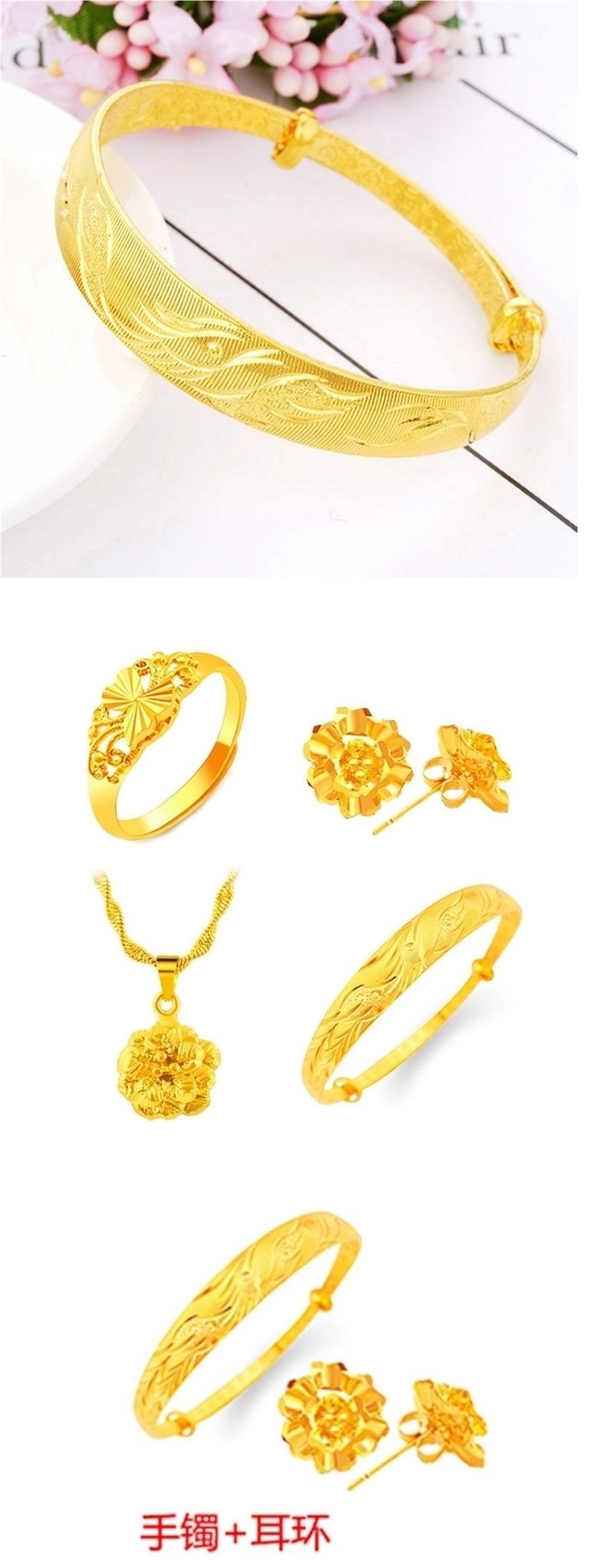 Аутентичный [новый позолоченный пятипредметный набор] песчаное золото, женское ожерелье, кольцо, серьги, браслет, ювелирные изделия для пар, Ланхунгуан