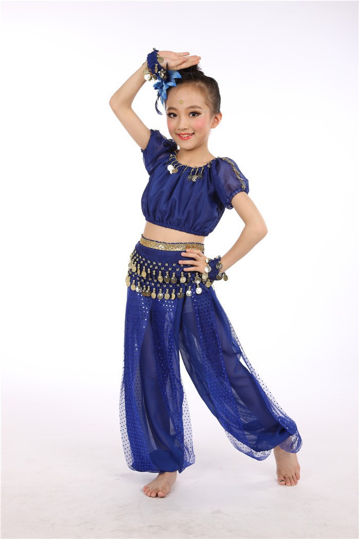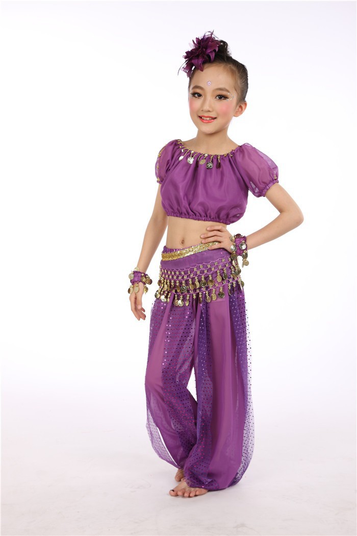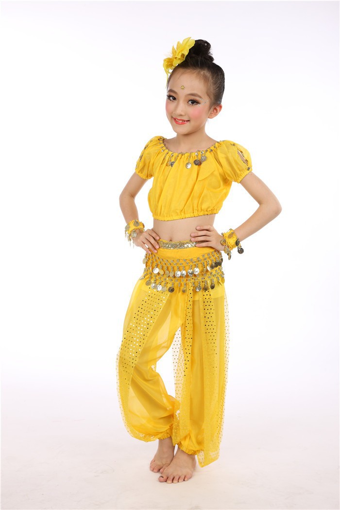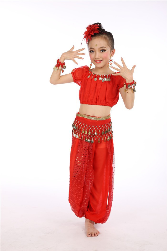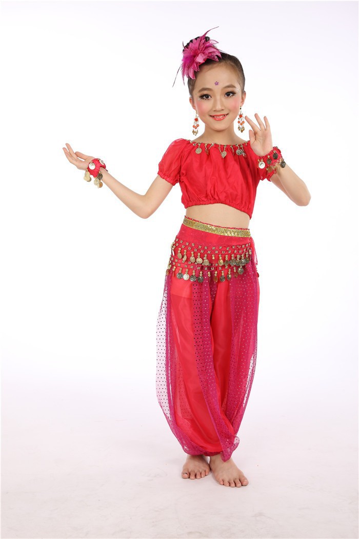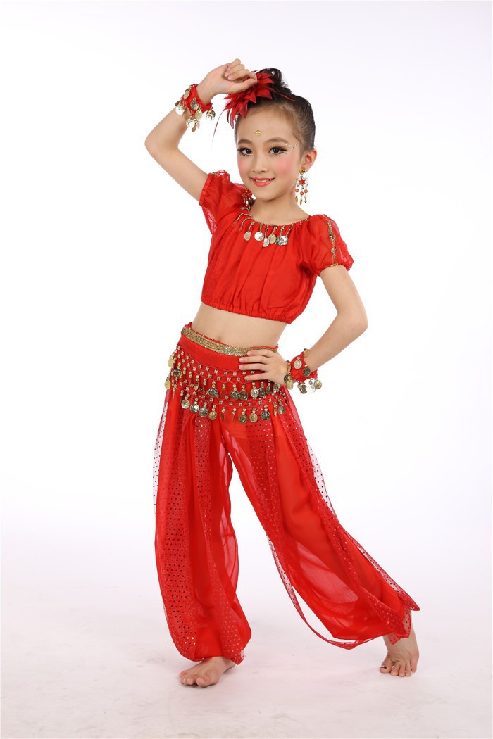 Комплект одежды для выступлений индийского танца для детей, костюмы для танцев для девочек и детей, доставка танца живота