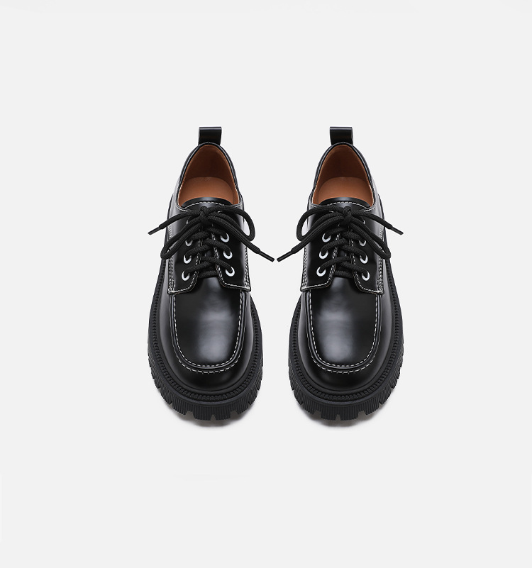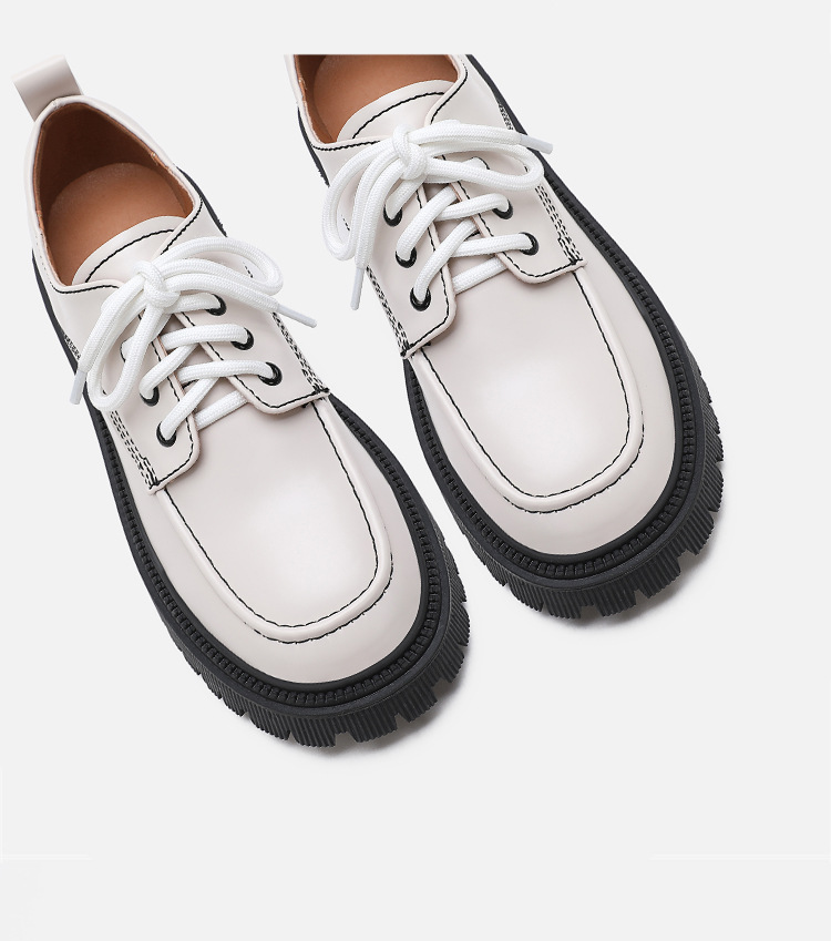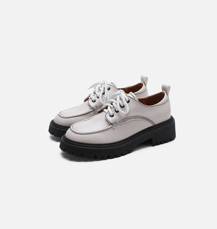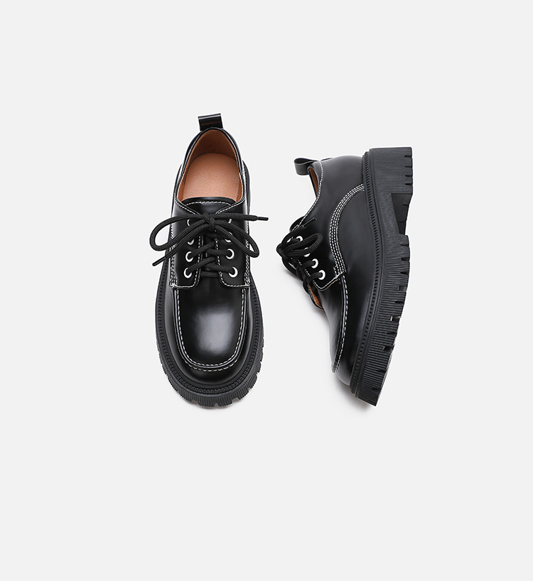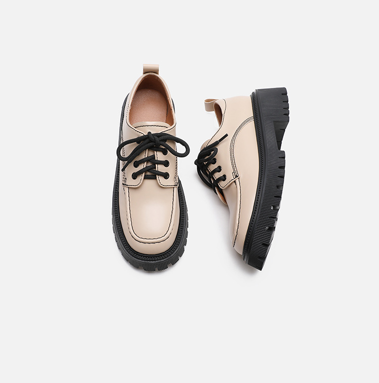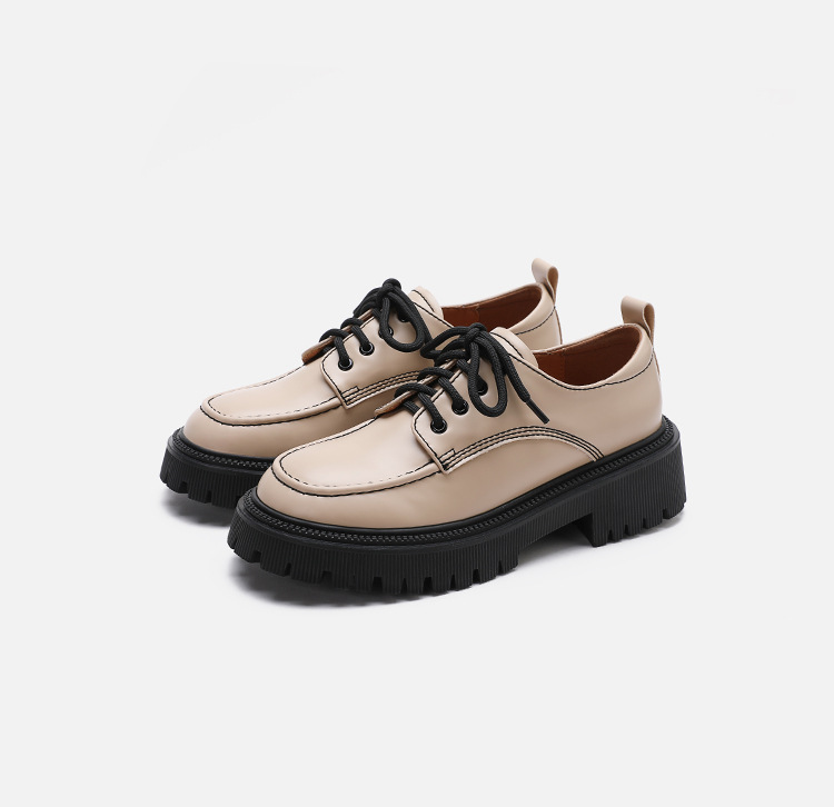 Туфли на толстой подошве в британском стиле для женщин, весна 2025, новый стиль, шнуровка, круглой формы, повседневные лоферы, натуральная кожа, глянцевые