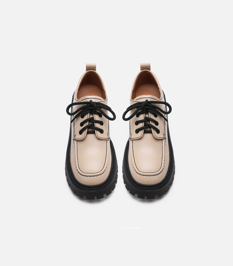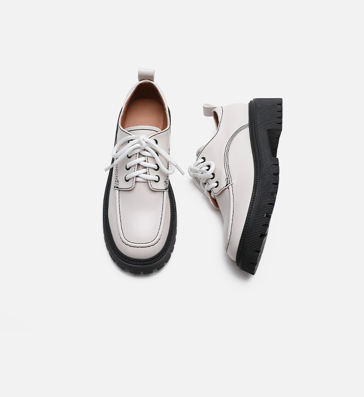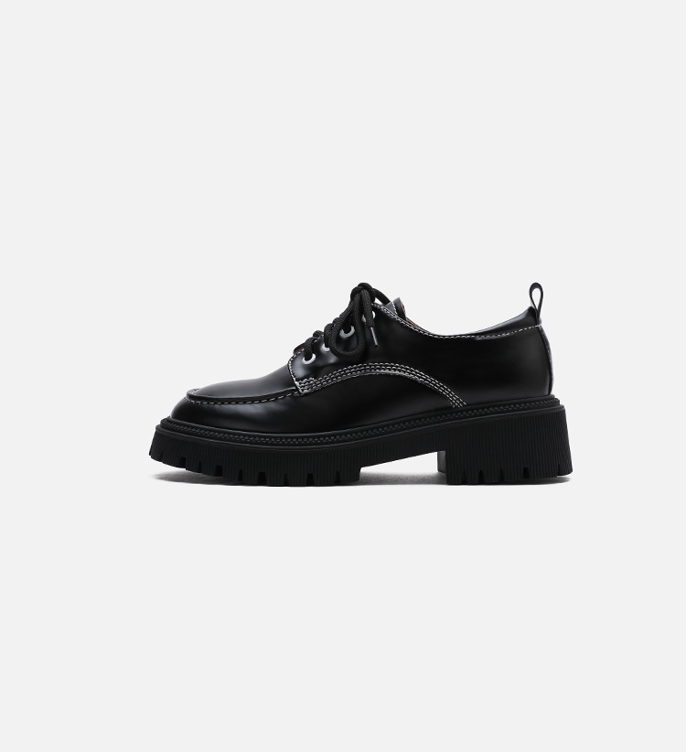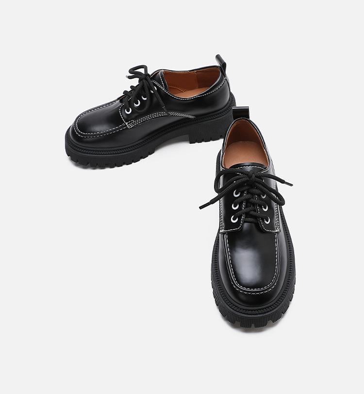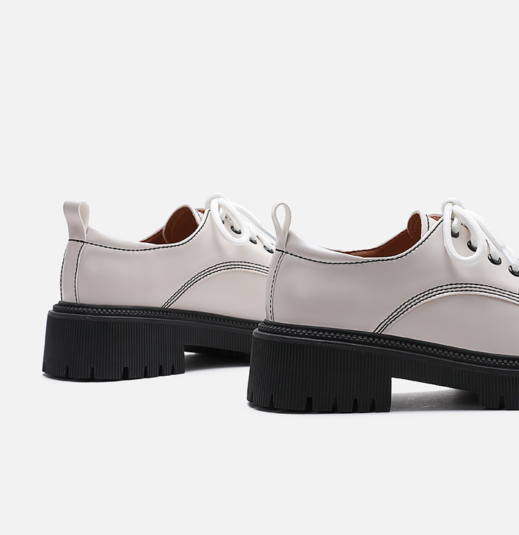 Туфли на толстой подошве в британском стиле для женщин, весна 2025, новый стиль, шнуровка, круглой формы, повседневные лоферы, натуральная кожа, глянцевые