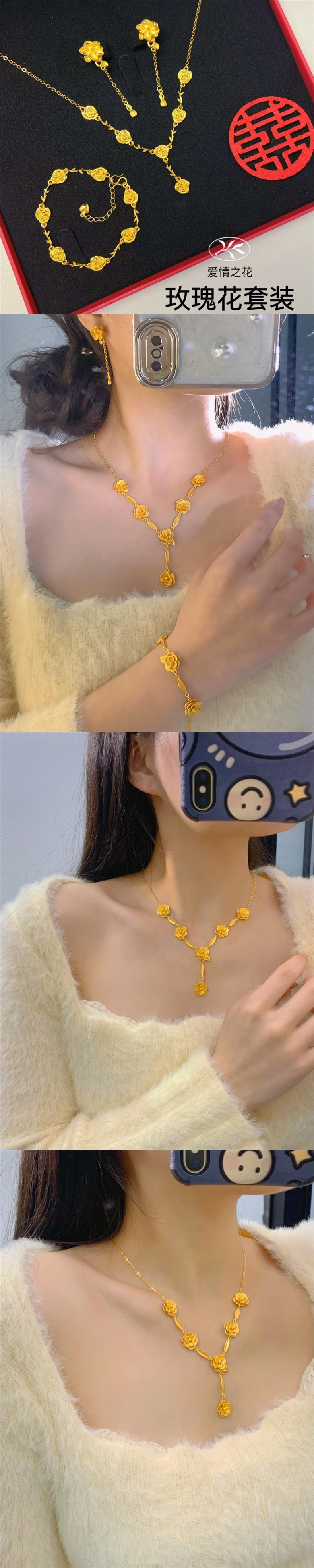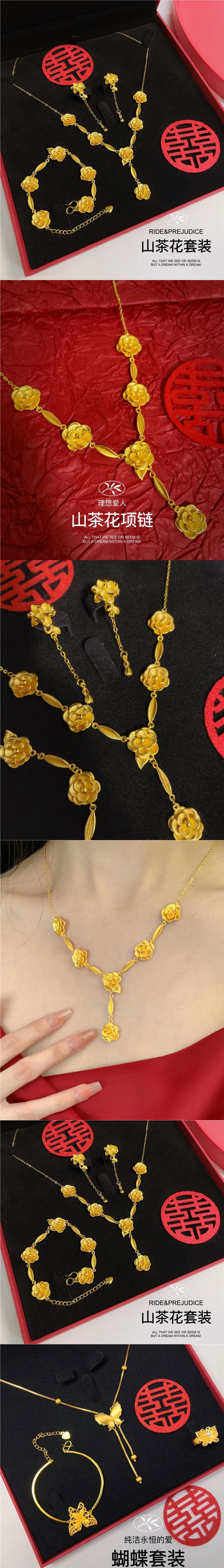 Аутентичный новый китайский стиль, песчаное золото, трехпредметный набор имитации камелии, ожерелье для женщин, высококачественные позолоченные украшения, Хонггуан