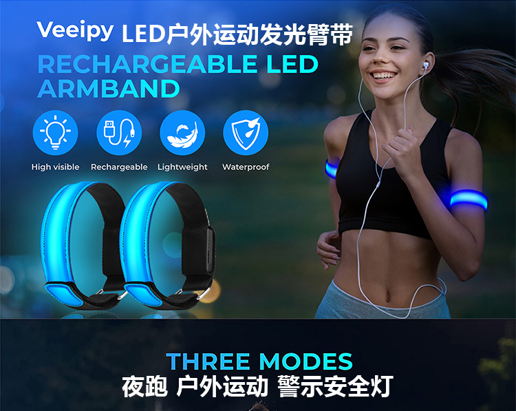 Ночной фонарь для бега, светящийся браслет для бега, защитные леггинсы для велоспорта, сигнальный свет, отражающее оборудование, USB зарядка