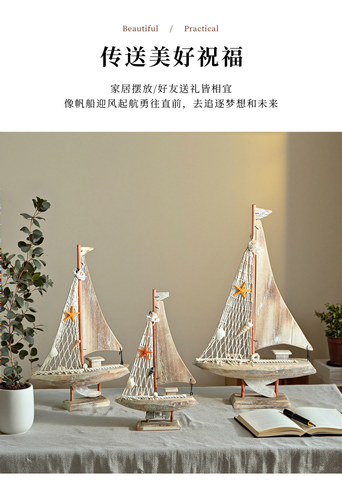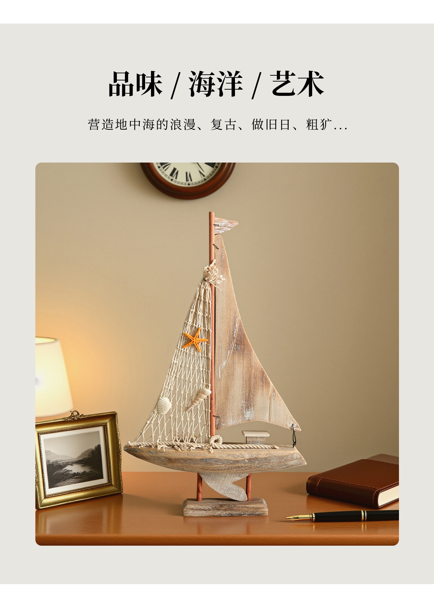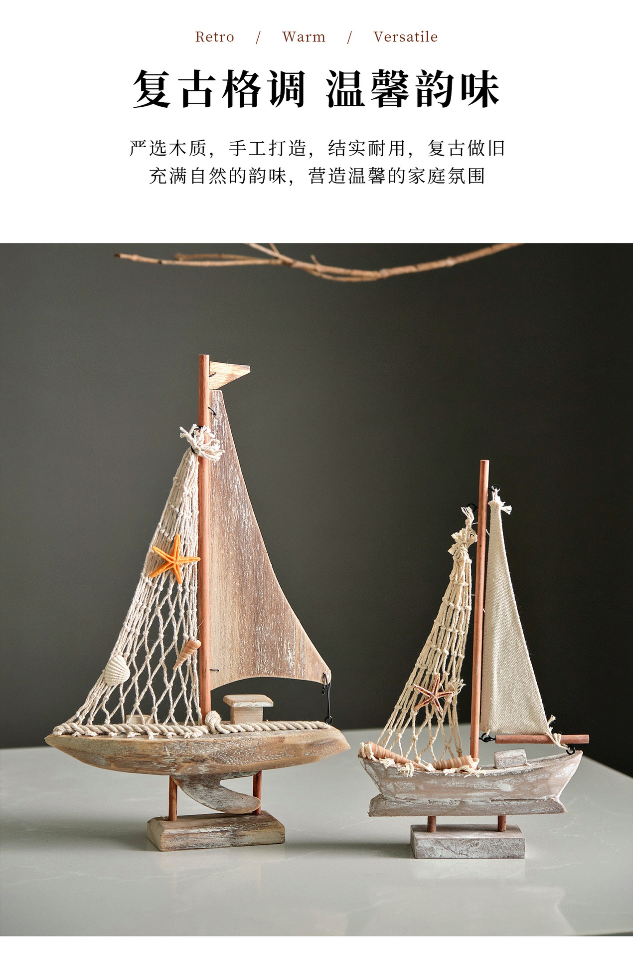 Американская стерео-яхта, средиземноморская рыболовная лодка, домашние аксессуары, антикварная модель рыболовной лодки, креативные домашние украшения, маленькая деревянная лодка