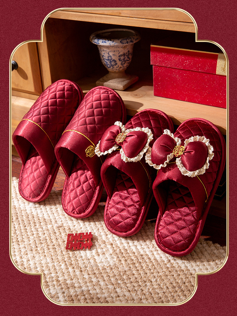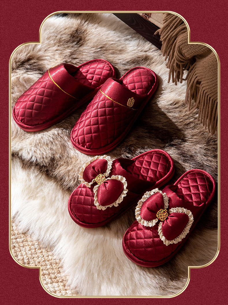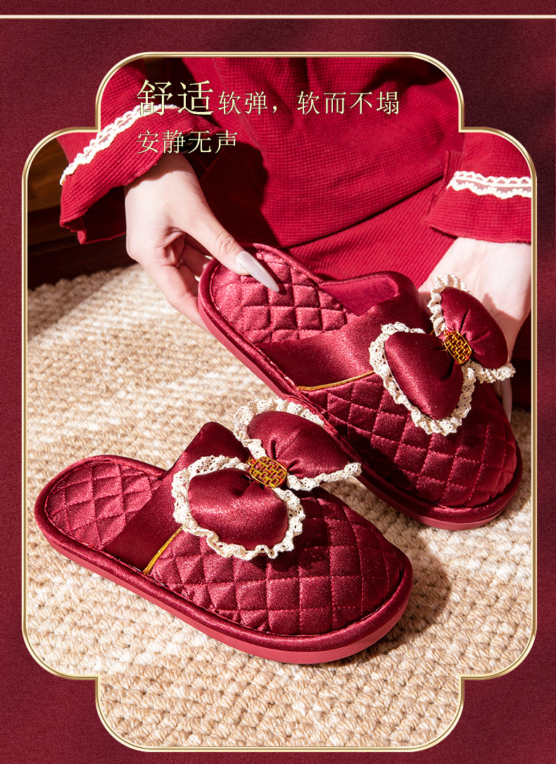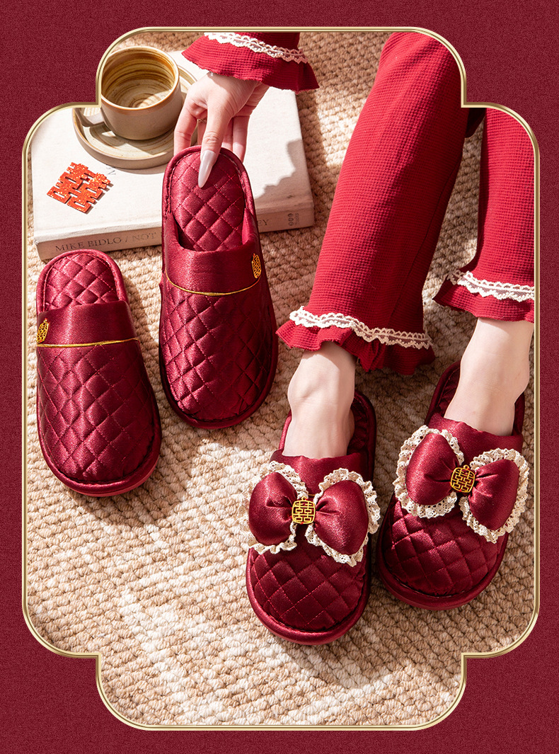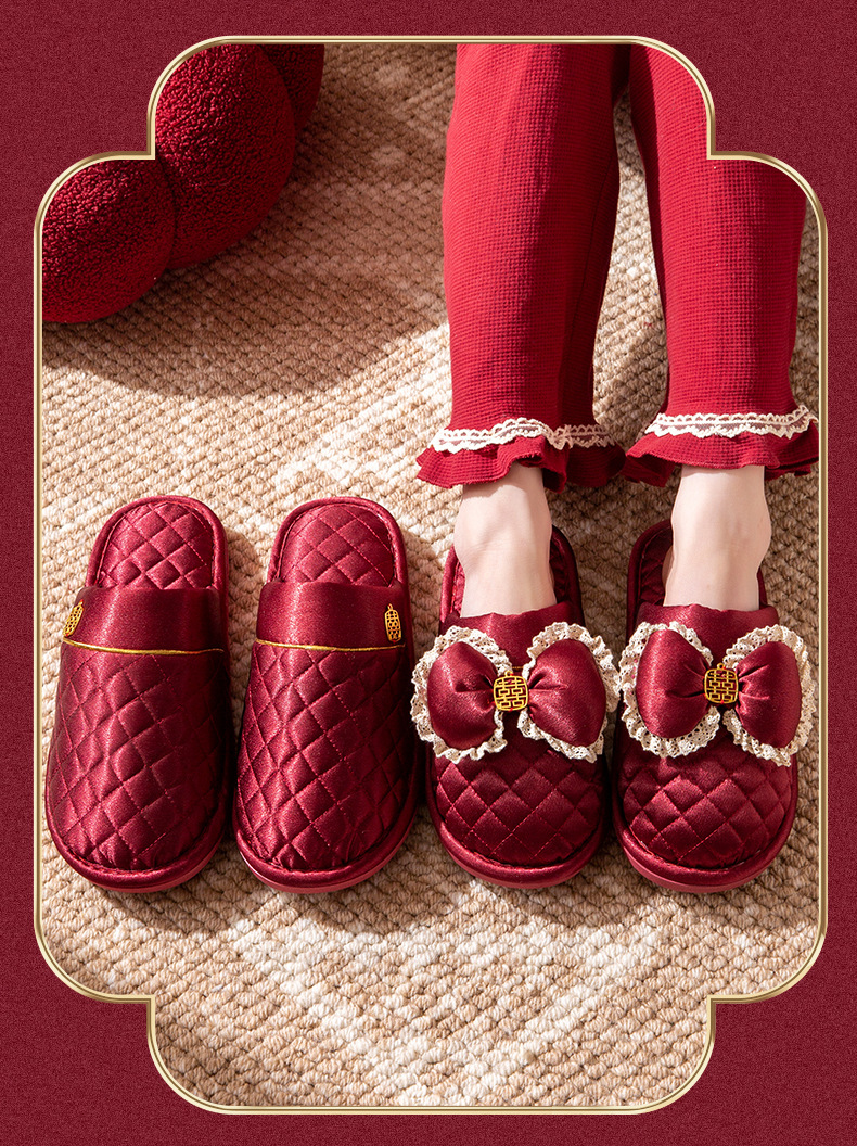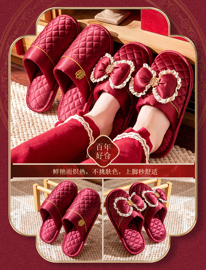 Красные тапочки для свадьбы, осень и зима, для невесты и жениха, свадебные, с закрытым носком, нескользящие