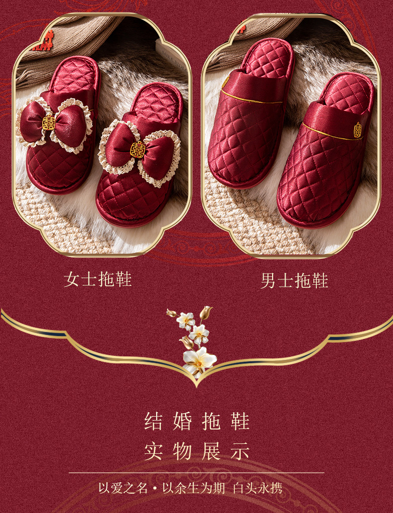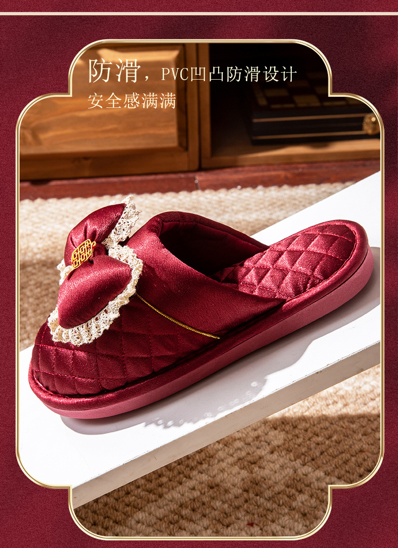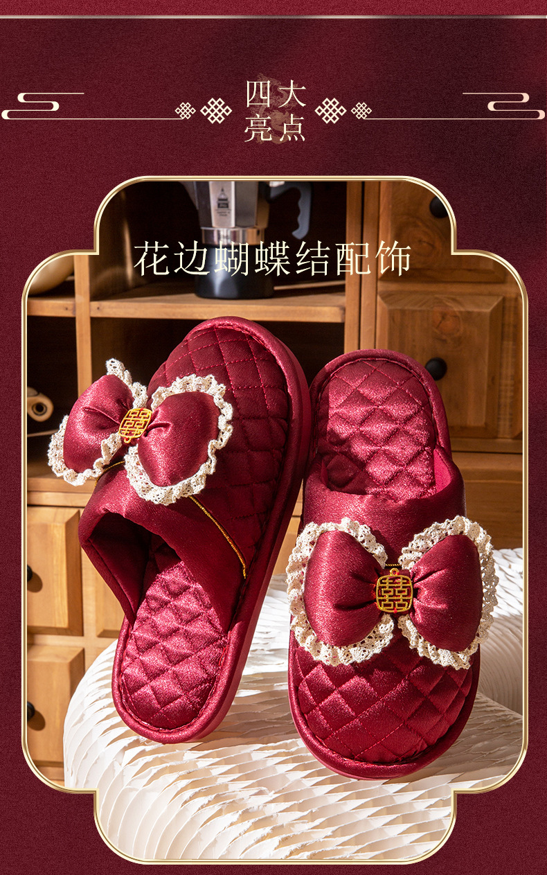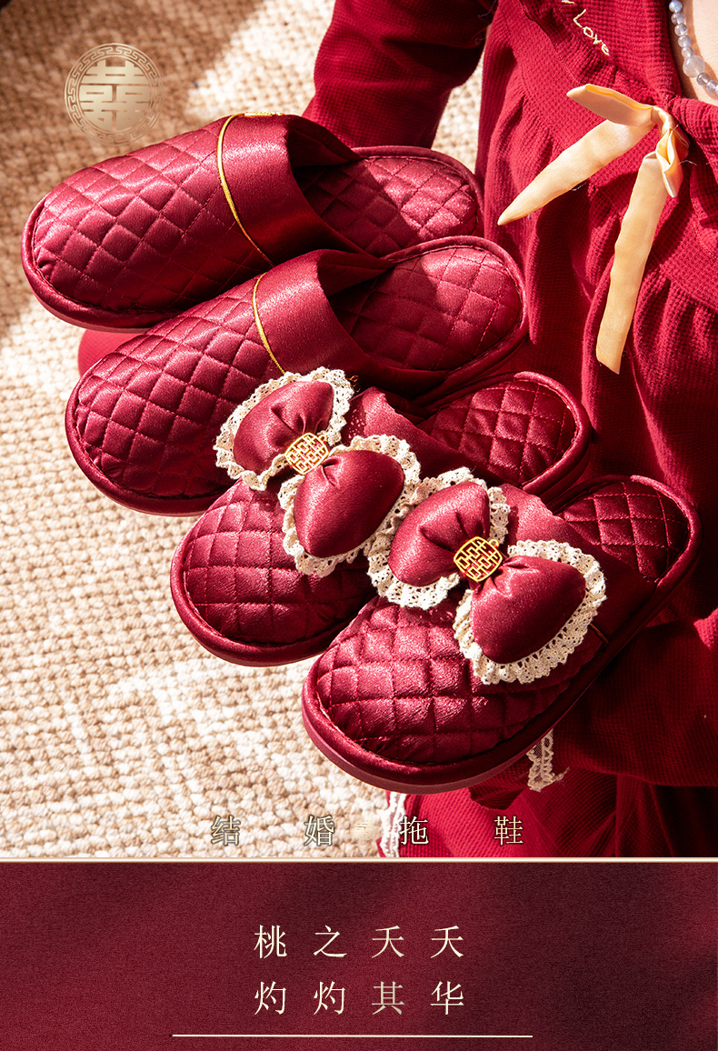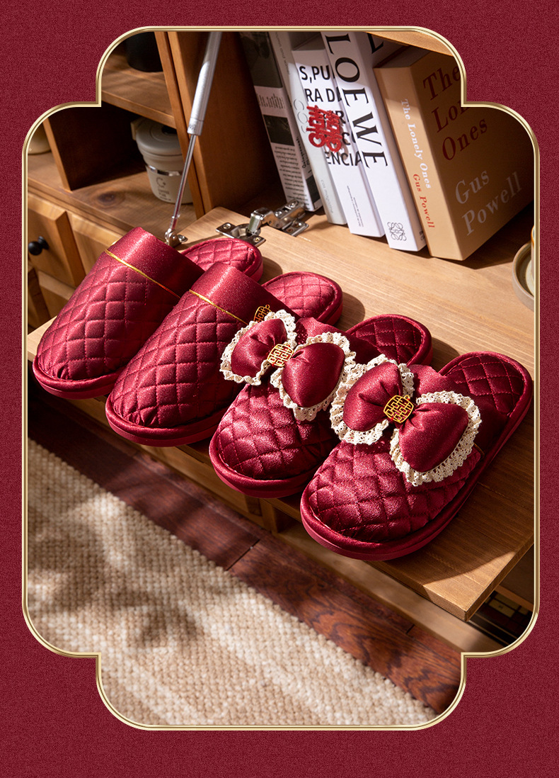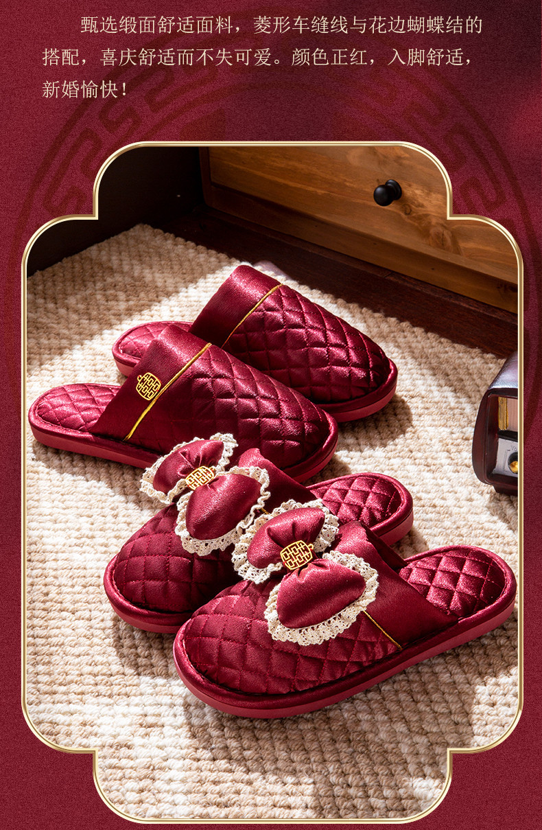 Красные тапочки для свадьбы, осень и зима, для невесты и жениха, свадебные, с закрытым носком, нескользящие