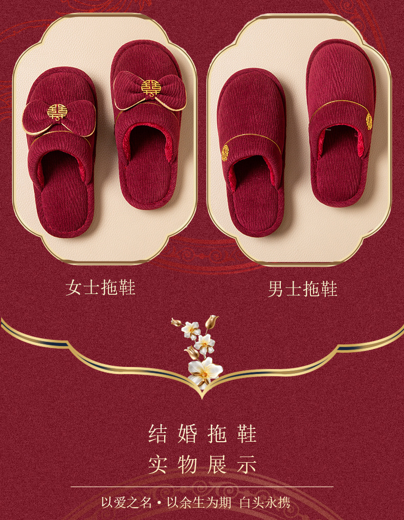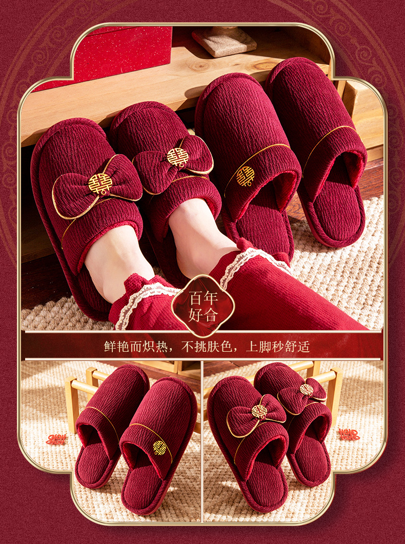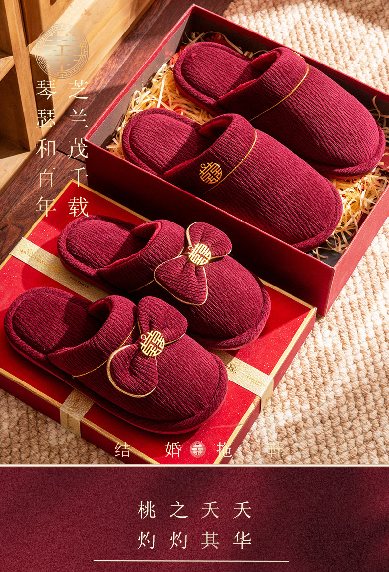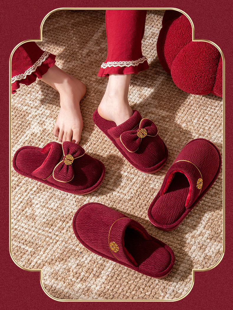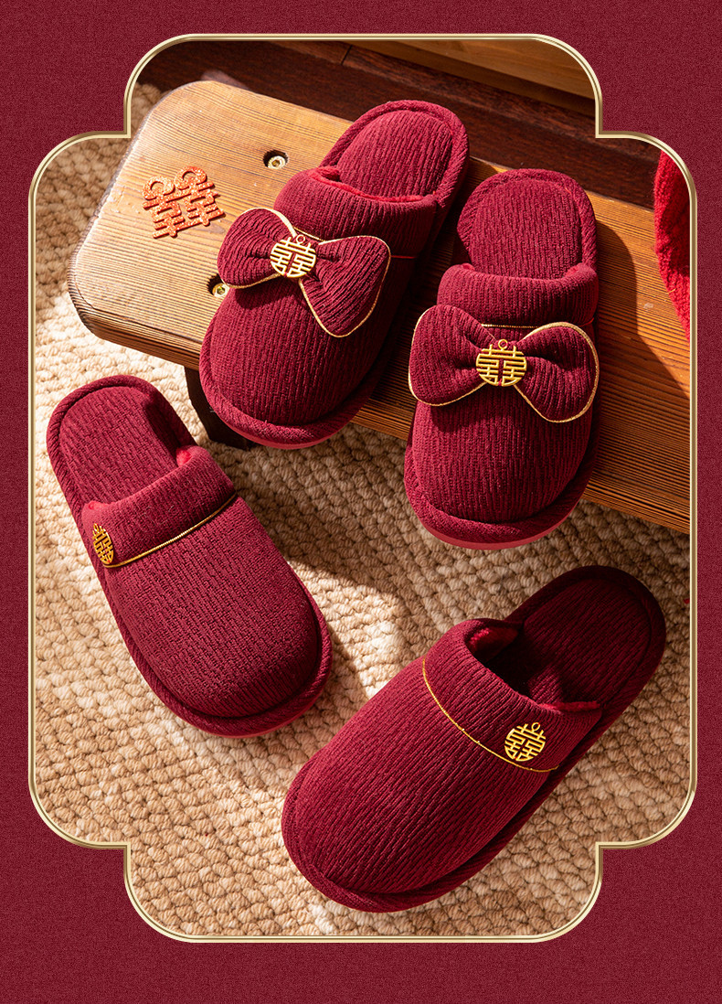 Пара зимних красных свадебных тапочек, с флисовой подкладкой и утолщением, для невесты и жениха, свадебные тапочки для новобрачных