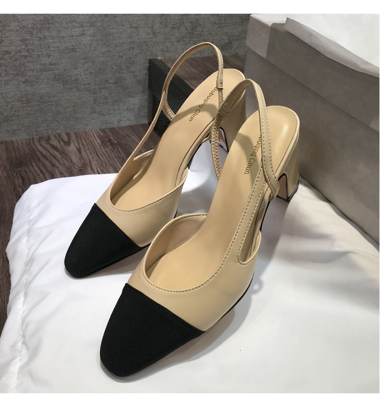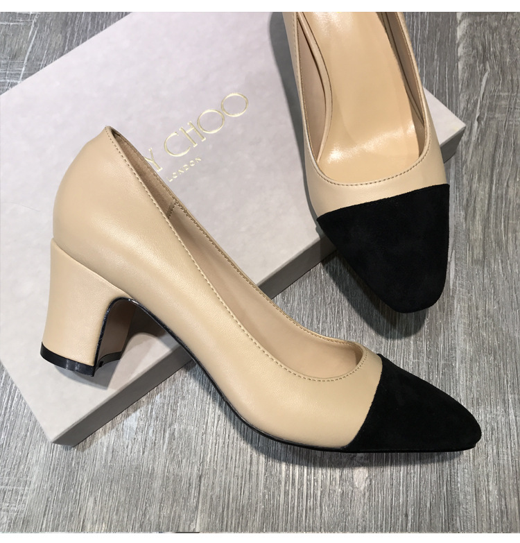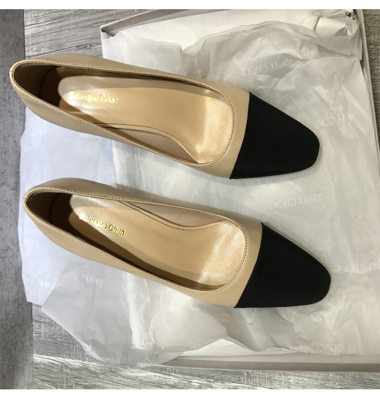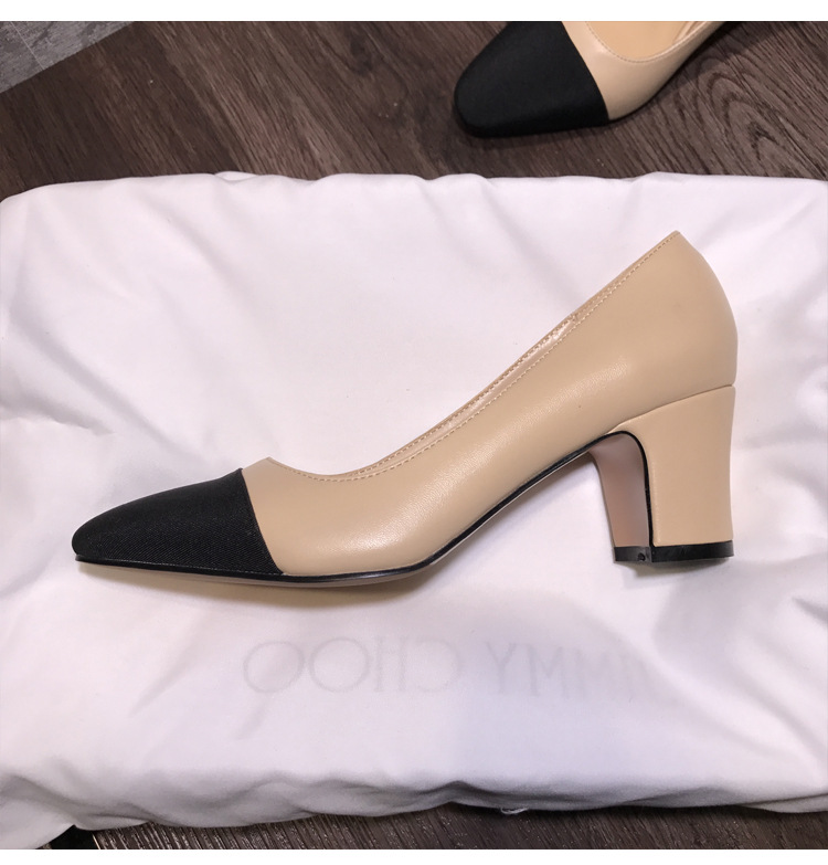 Туфли на толстом каблуке в стиле твид для женщин весна-осень 2025, абрикосовые полувысокие каблуки, натуральная кожа, цветовое сочетание, универсальные