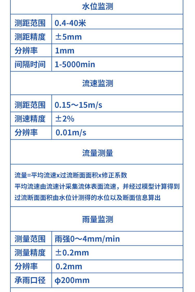 Область применения Flow rate, water level, flow and rainfall measurement of rivers, lakes, tides, reservoir gates, groundwater pipe networks, irrigation canals and channels, etc