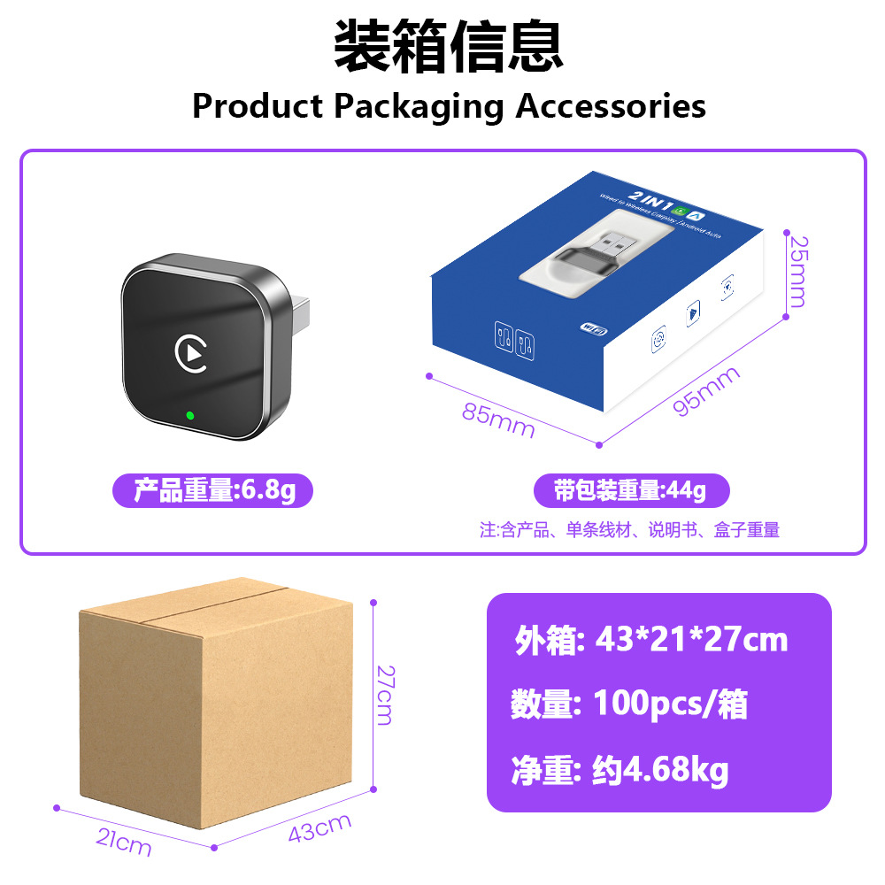 Горизонтальный подключаемый Carplay модуль, оригинальный проводной Carplay на беспроводной для Apple и Android Auto