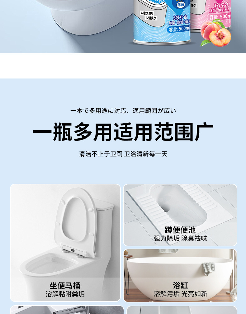 Пена для чистки туалета, мощное удаление загрязнений, ароматизатор, мощное удаление накипи и дезодорирование, антибактериальный и дезодорирующий
