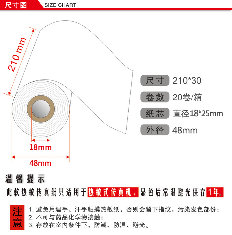 Термофакс бумага универсальная 210X30 для факсимильных аппаратов 20 рулонов в коробке