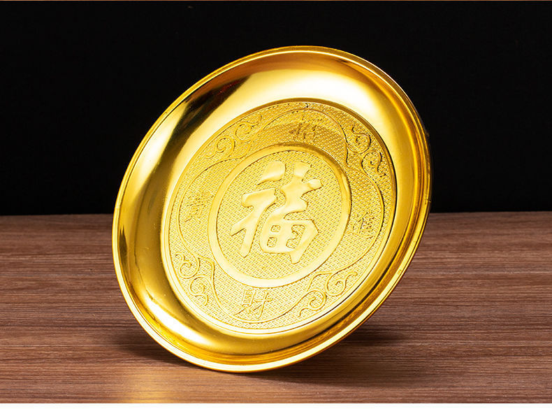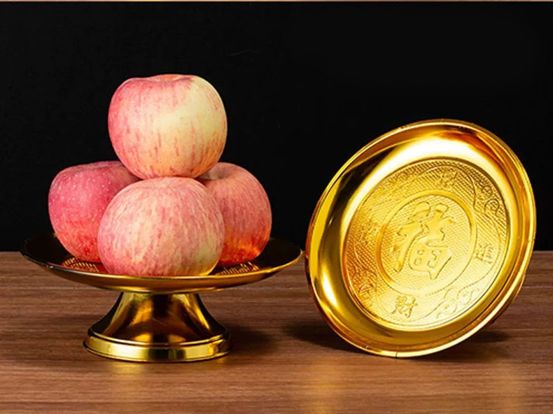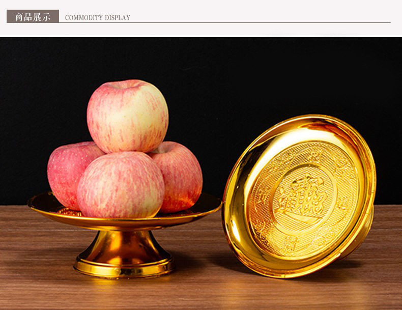 Тарелка с золотым благословением, буддийские принадлежности, фруктовая тарелка Будды, товары для поклонения Будде, домашний лотос, высокая тарелка для фруктов