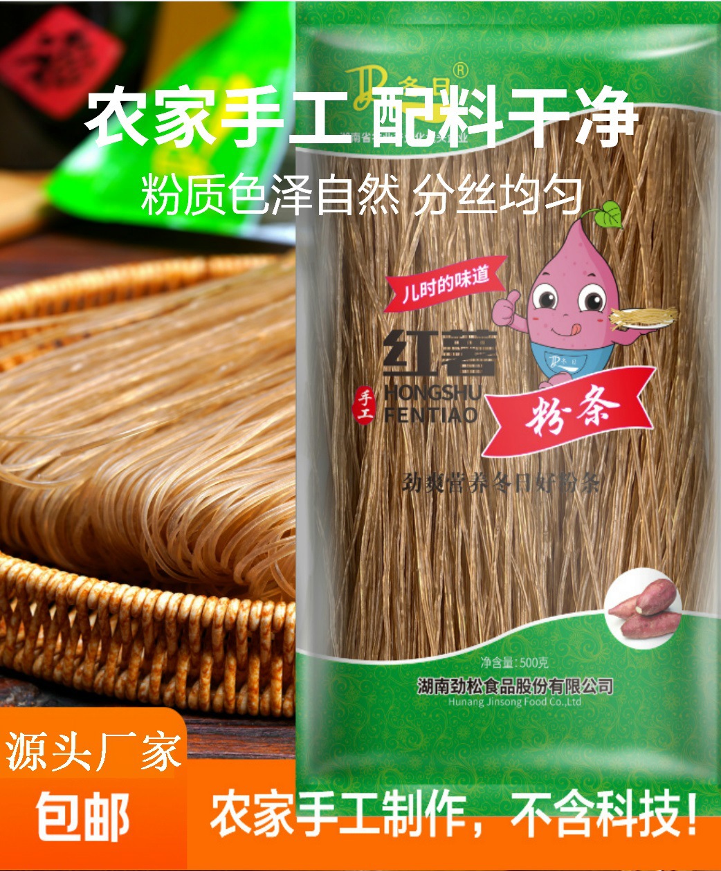 Номер товара 0.5kg green bag sweet potato straight vermicelli