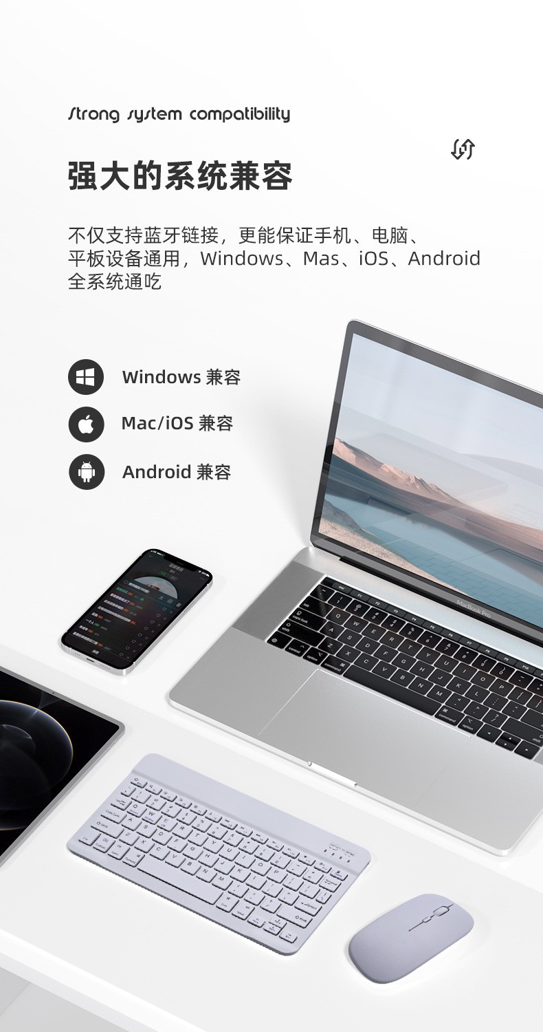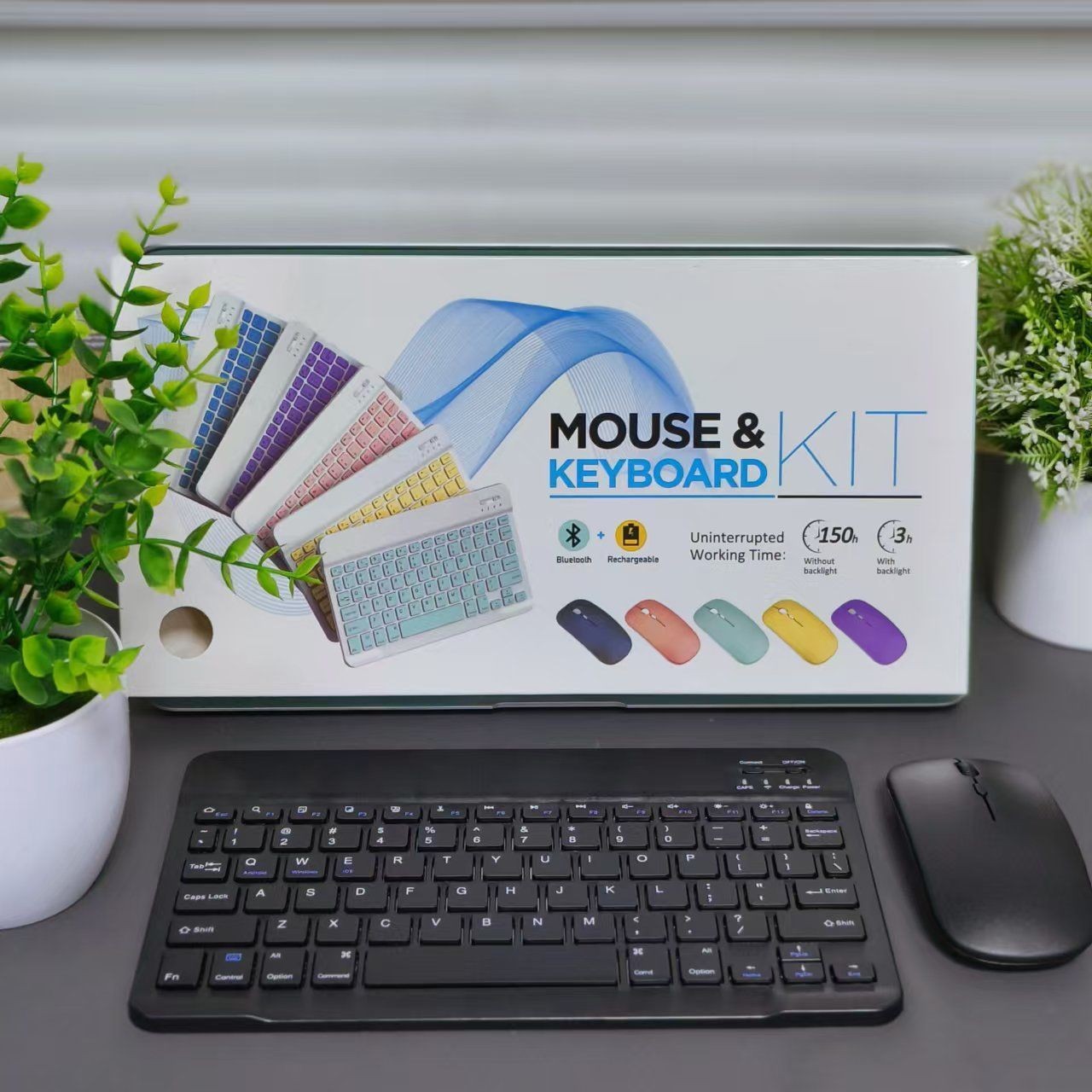 Портативная клавиатура Bluetooth для планшетов iPad, Huawei, Samsung, Xiaomi, комплект клавиатуры и мыши, тихий, многоязычный